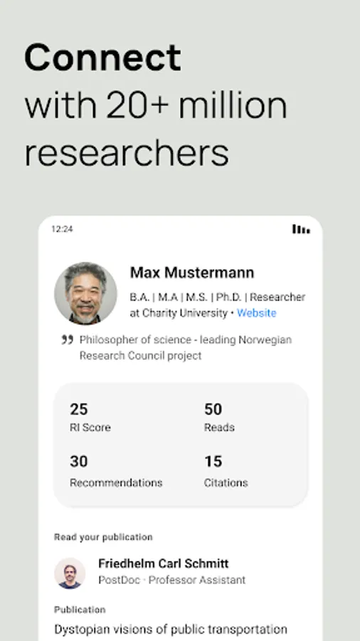 To use the app, you need to have a registered ResearchGate account and be 18+ years old.