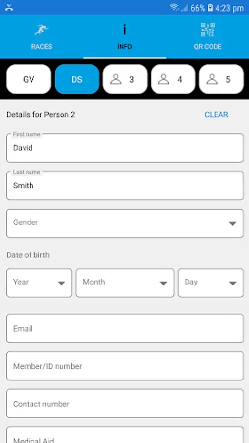 Enter details for up to 5 participants, and generate an on-screen QR Code. This can be scanned at events for quick and easy registration.