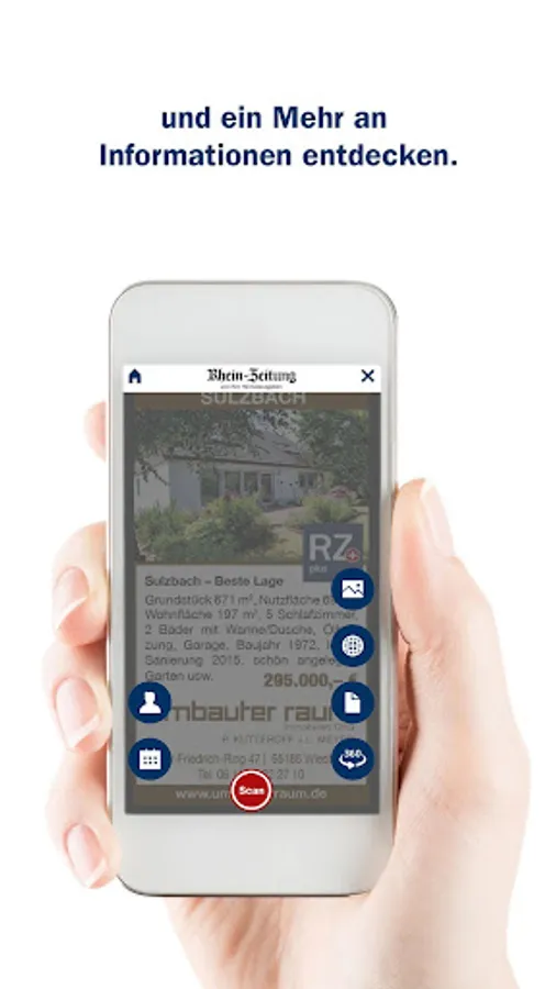 All contents of the newspaper, behind which puts added value can be recognized via RZplus icon. Scan the selected item, image or a display. This new connection from the printed to the digital world offers many opportunities: it open as cryptic information, photo galleries or videos - even in the 360 degree view. Events You can save directly by scanning the calendar. And with the link in the route planning you navigate your device directly to the scene.
