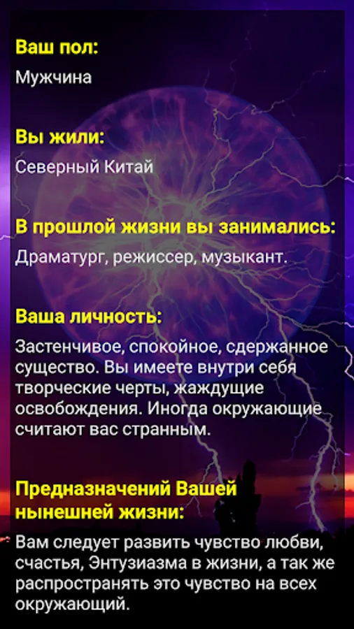 The objective of this application is simple and complex at the same time - to tell you about your past life and thus help you to find himself, to find his true "I".