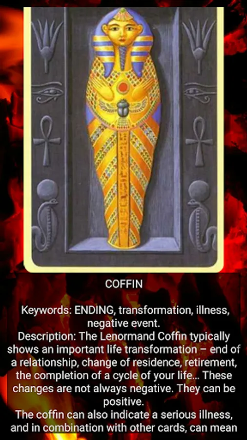 More than 10 variants of the predictions, such as: day, week, month, past, present, future. In addition, all the cards will prompt where you made mistakes, how to act in this or that situation and advise how to proceed.