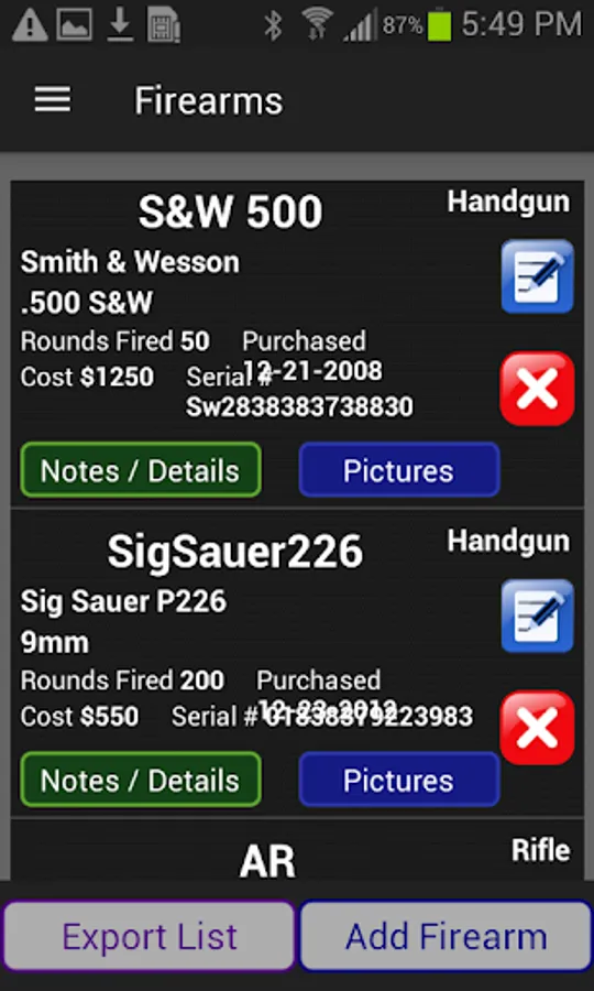 It is also helpful for an easy one-stop-location to track your firearms (including cost, serial #, and date of purchase) and your Conceal Carry licenses. You can match up your firearm to the range sessions, and track the number of rounds fired. You also can set up early warnings for when your CCW license(s) are about to expire or have expired.
