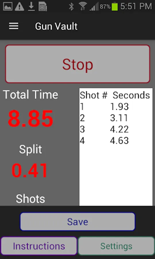 Shot Timer – Log your shots fired from buzzer to last shot. Can set a delay for solo practice. Can also be set to time shots in dry fire practice.