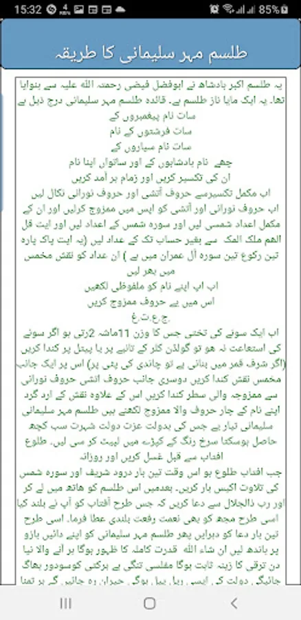 یہ طلسم اکبر بادشاھ نے ابوفضل فیضی رحمتہ اللہ علیہ سے بنوایا تھا۔ یہ ایک مایا ناز طلسم ہے۔ قائدہ طلسم مہر سلیمانی درج ذیل ہے