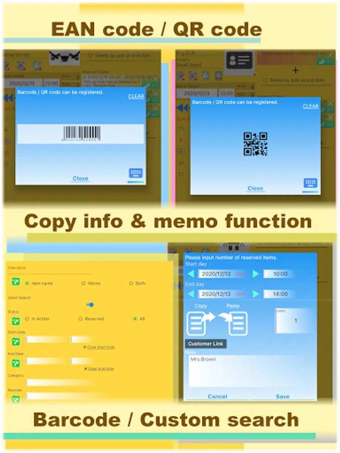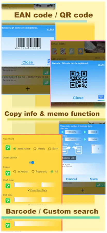 Barcode / QR registration, and search