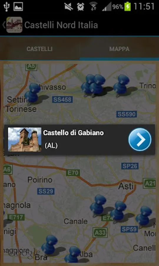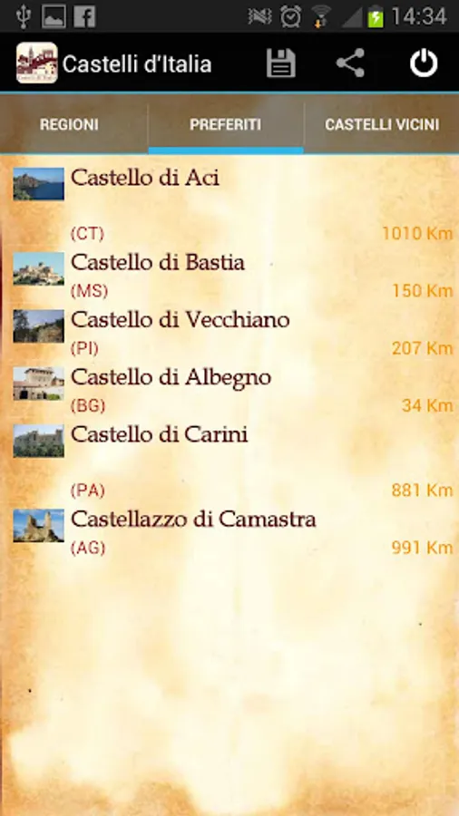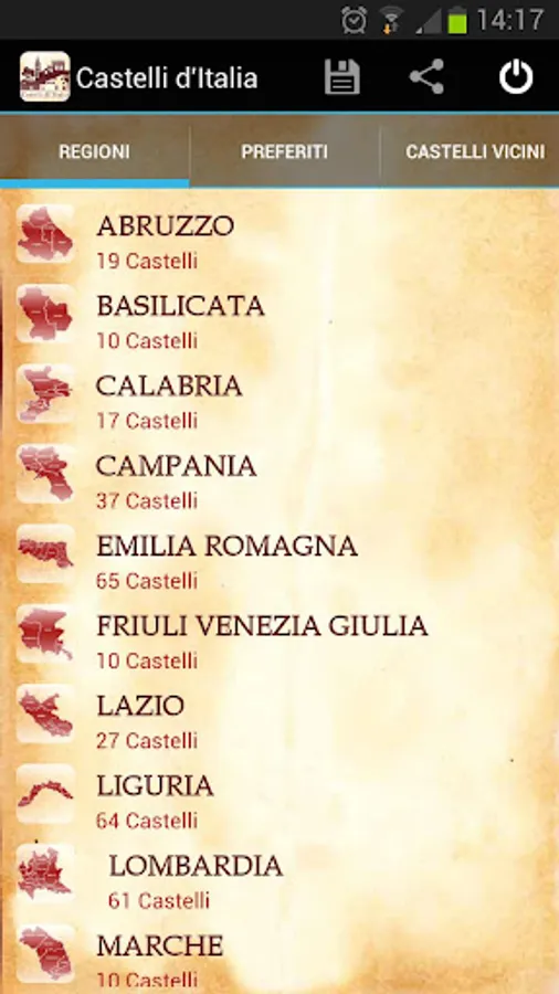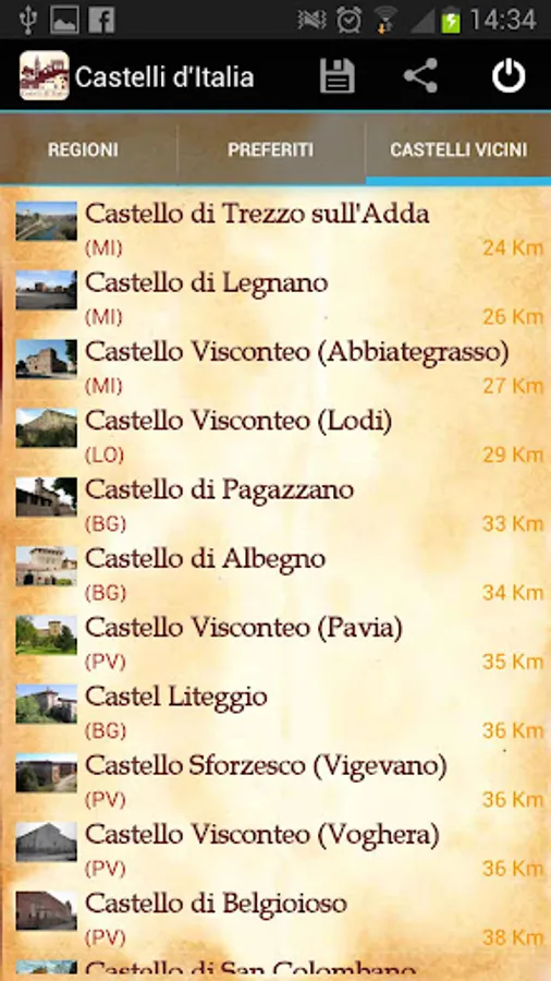 Castles in Italy is an app for Android that allows you to easily find more than 1000 castles in Italy divided by regions.