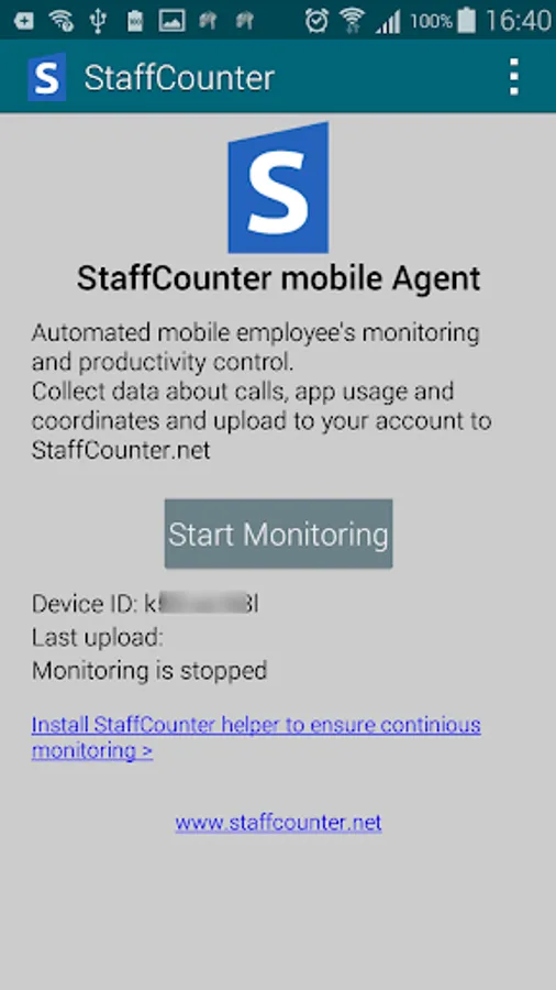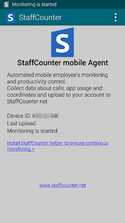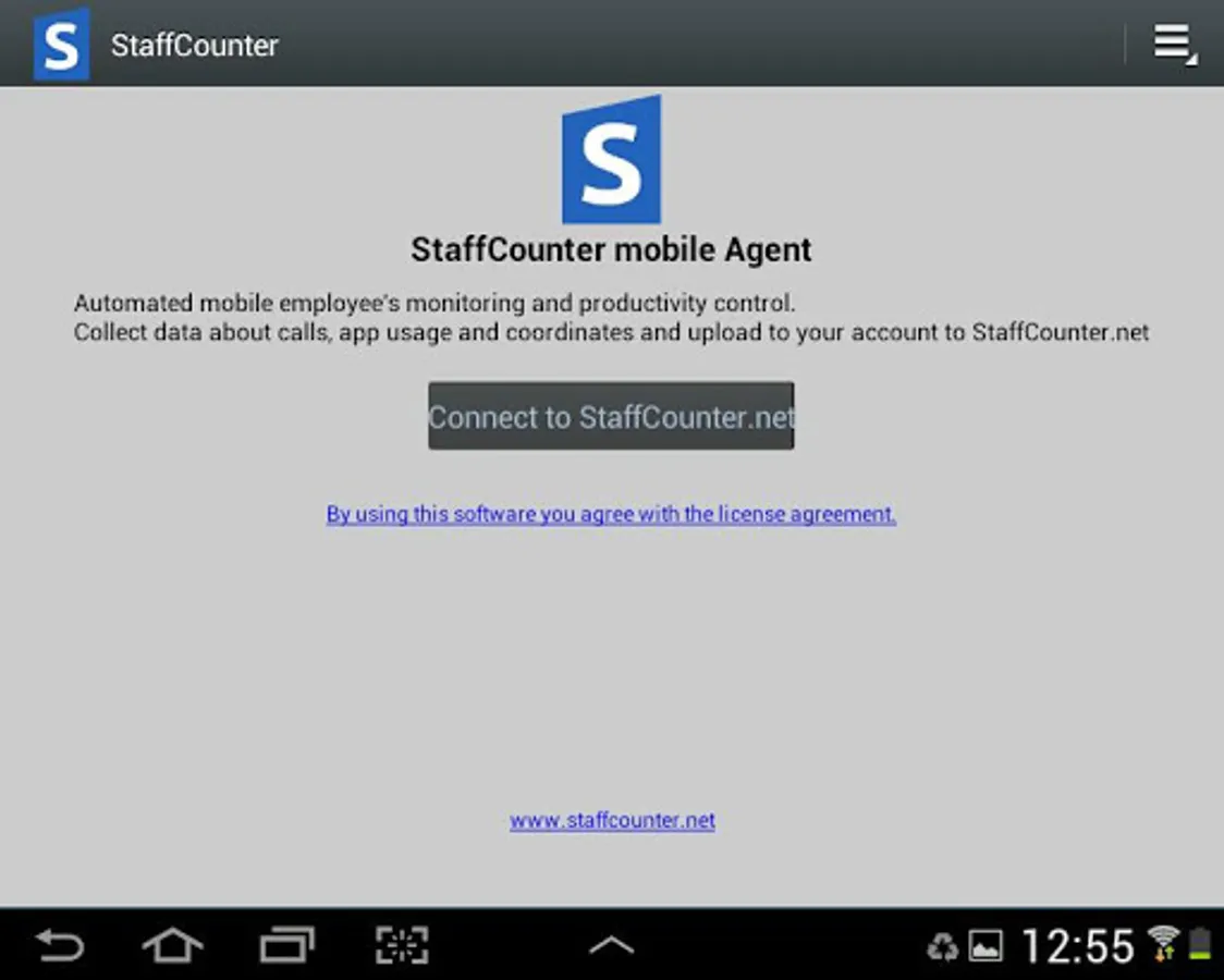 StaffCounter (free version) - Android monitoring system. This is a demo version with limited functionality, lack of hidden work and deletion protection. It is fully chargeless. If you want complete monitoring functionality, get our full version of StaffCounter here: