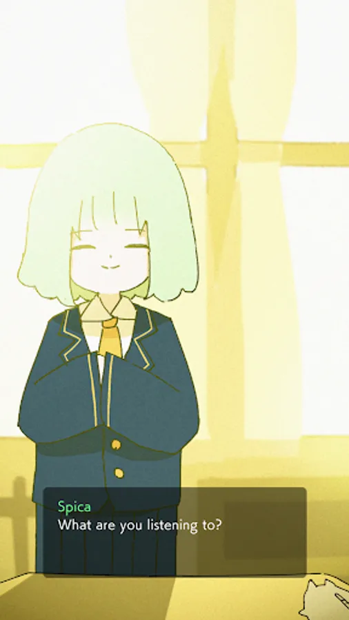Spica is looking for something to listen to, and Mikage, the protagonist, goes on a journey in a mysterious world to search for songs that will please her friend.