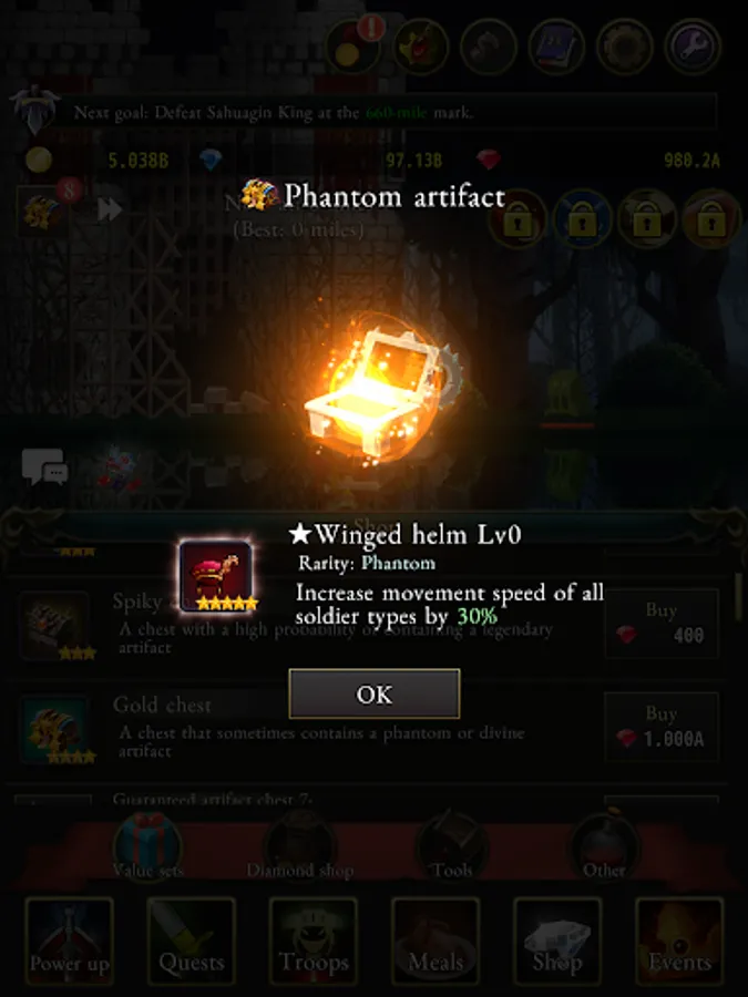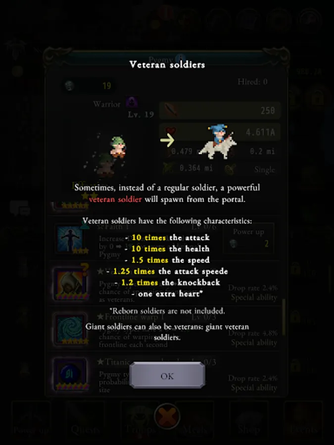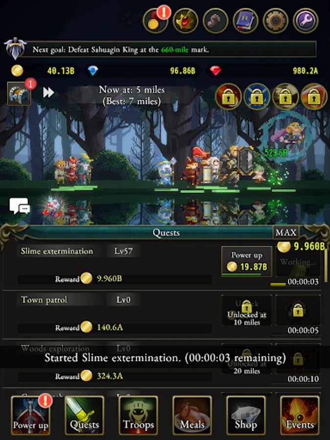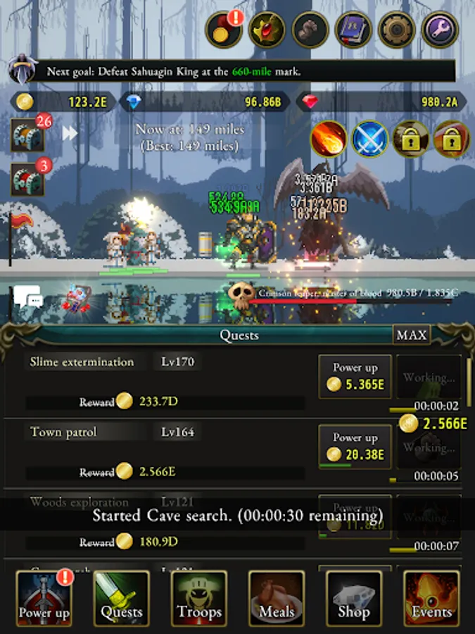 Completing quests and killing monsters will earn you coins that you can use to make your troops stronger.