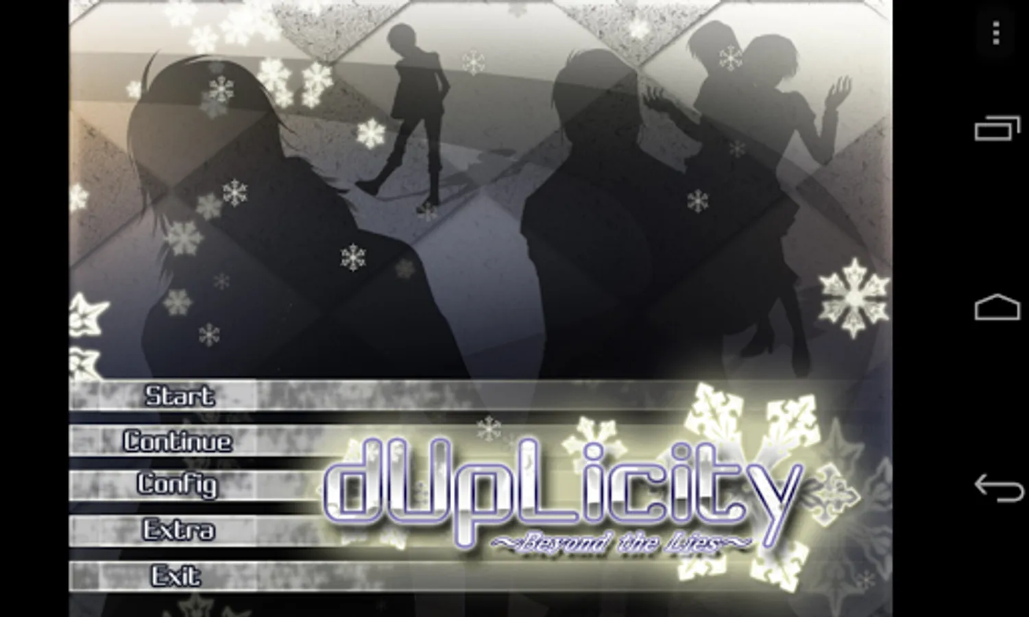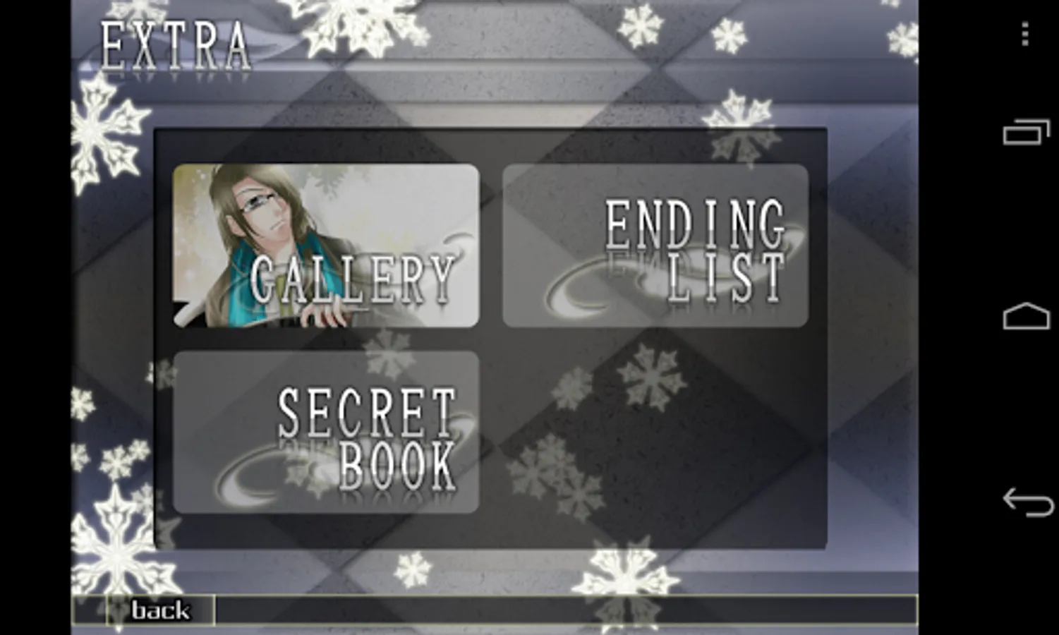 In some devices, if you close the game using the android "Home" button, sometime the game will be shut down improperly. This might make some of the data saved wrongly, like some CGs that you have seen is being locked once again. Please use the quit button to turn off the game properly before using the other app.