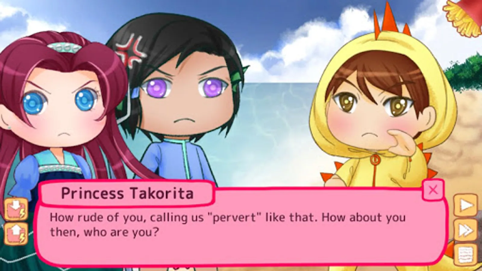 On the land, Princess Takorita meets the humans Dino and Ina.