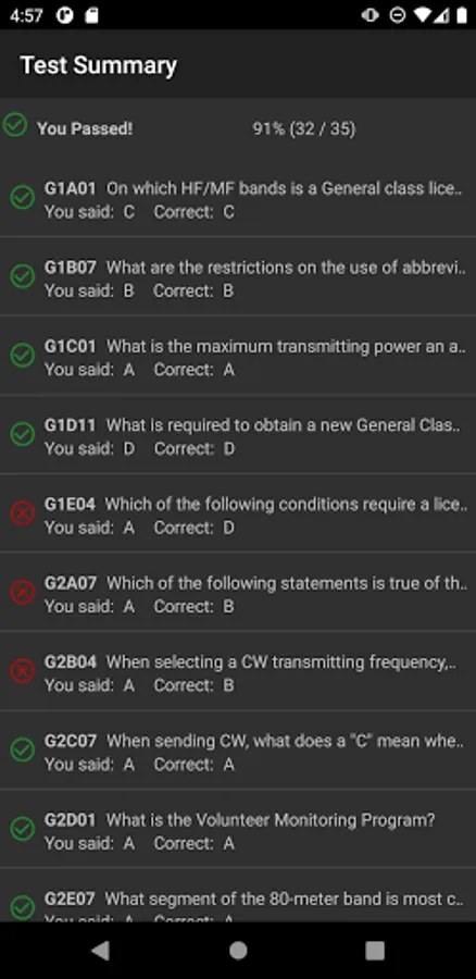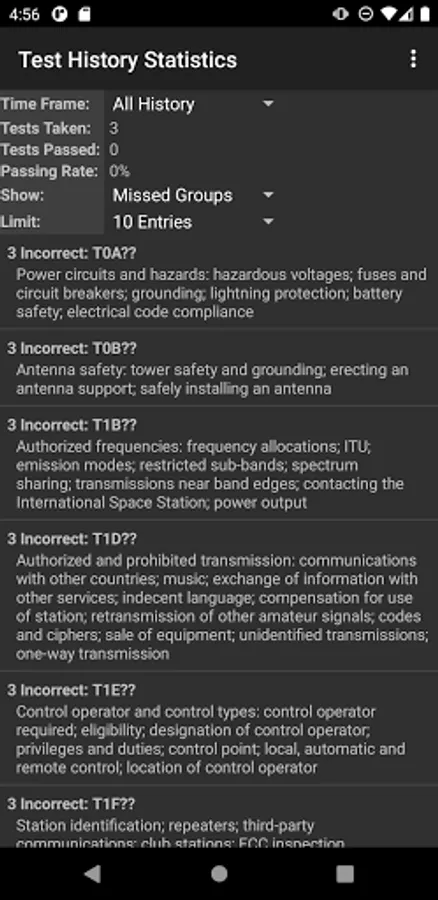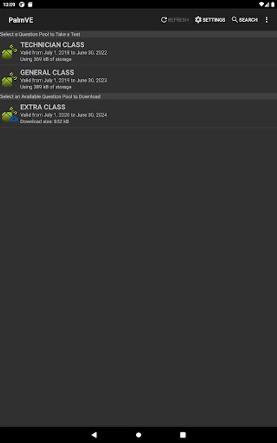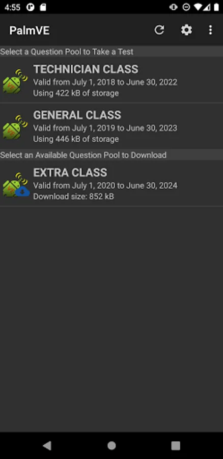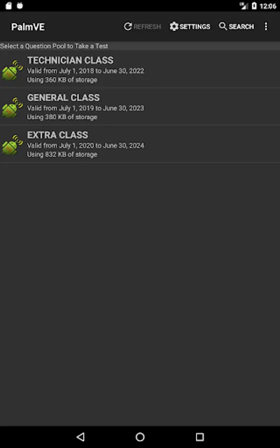 PalmVE is a Volunteer Examiner in your pocket. You can use it to take practice US amateur (ham) radio exams. All levels are supported, including Technician, General, and Extra. It will track your test history, and it allows you to search the question pools. You can also view the question figures.