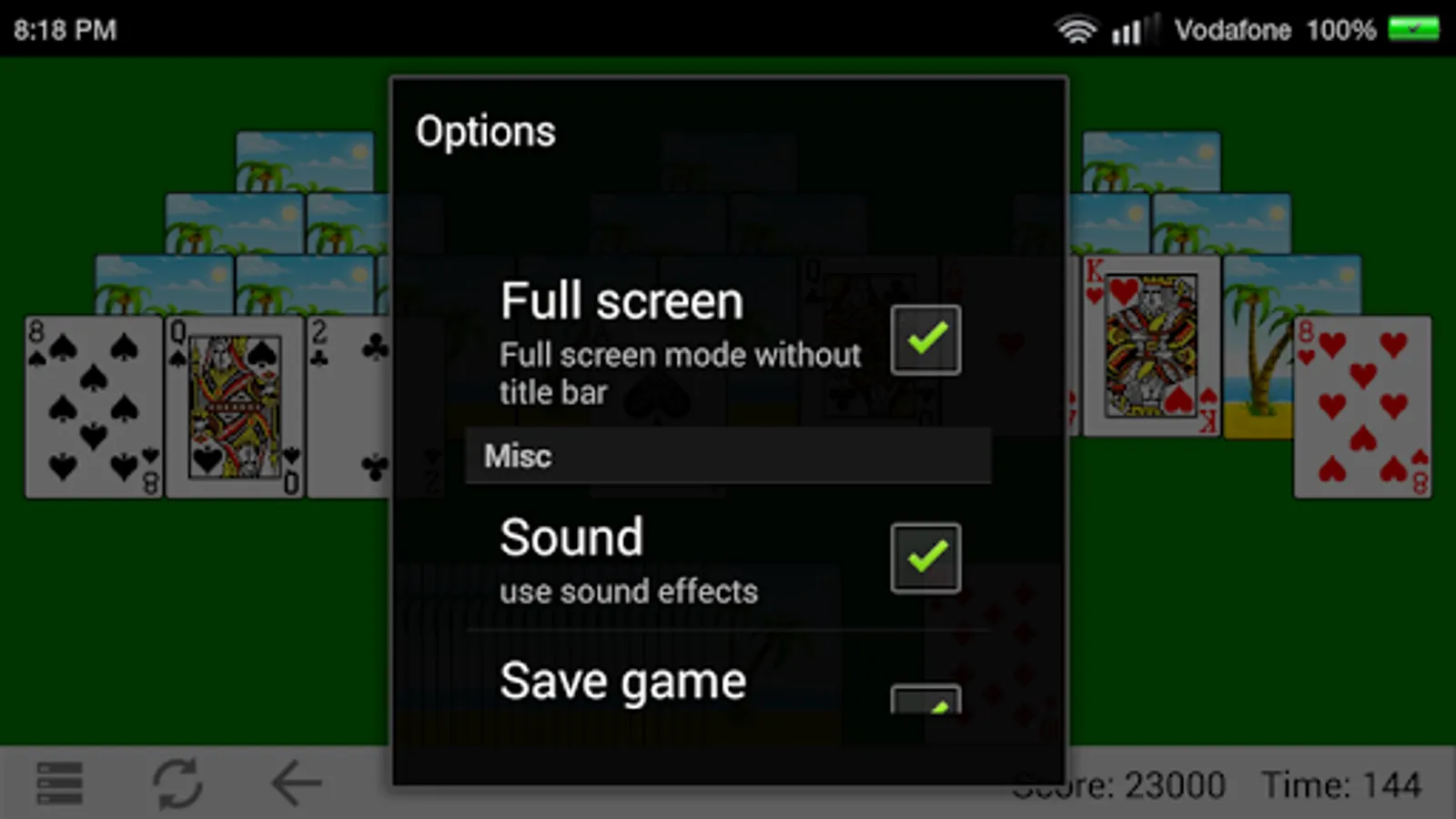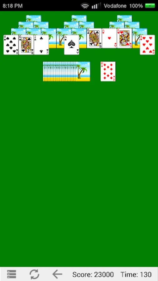 The game starts with eighteen cards dealt face-down on the tableau to form three pyramids with three overlapping tiers each. Over these three pyramids are ten face-up cards.