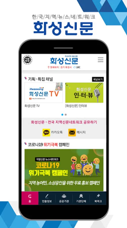 The Hwaseong Newspaper, which will contain the news that we are the owner of, and the information that we felt the necessity while living, is a press company that has joined the Korea Regional Newspaper Association. Newspapers, Haman Newspapers, Gochang Newspapers, and more than 200 leading local newspapers in Korea.