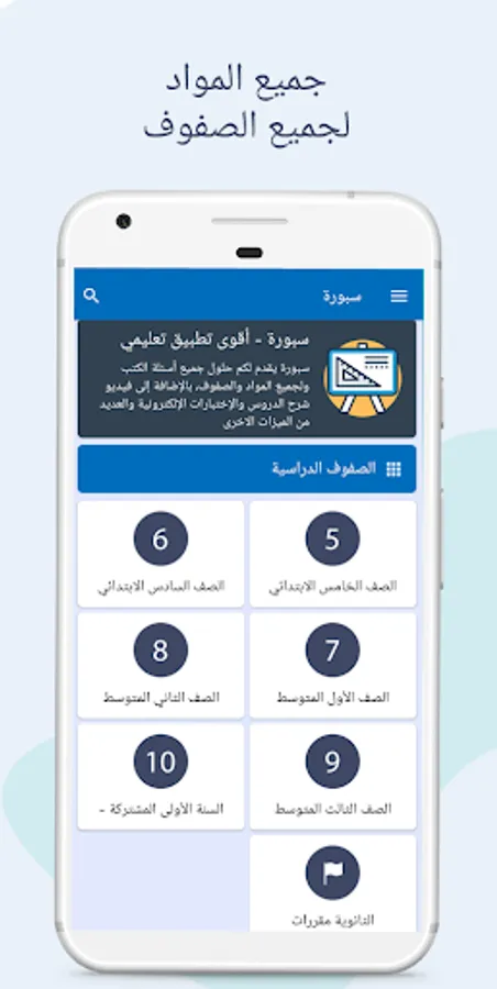 حيث يشمل التطبيق جميع الصفوف من الأول الابتدائي وحتى الثانوية مقررات