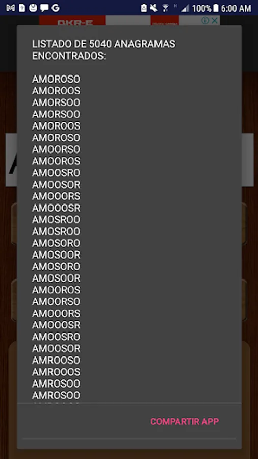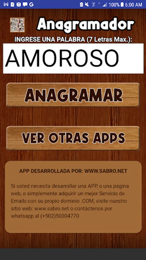 The ANAGRAMADOR APP is a Swapper that shows all combinations of Letters in a Word.