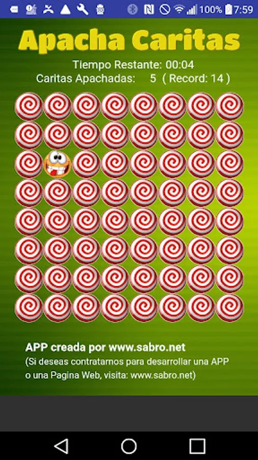 ApachaCaritas is a game made in Guatemala to measure your speed of reaction apachando leaving the faces on the screen of your phone or tablet, you have 10 seconds to apachar as many possible faces