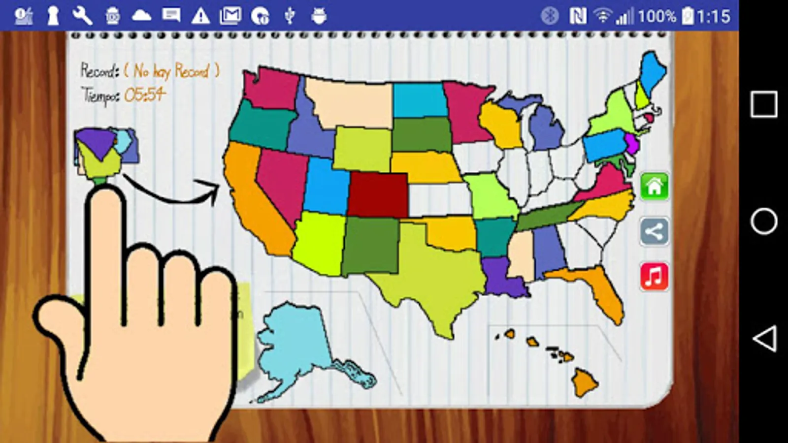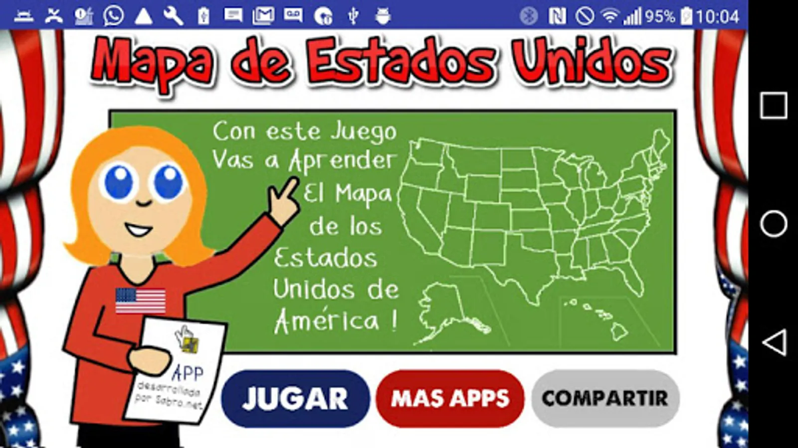 Game Map United States is a free game that allows children and adults to learn the entire map of the UnitedStates of America, hear how they are pronounced in Spanish each of its states, such as the names of each state are written and location states in the US Map