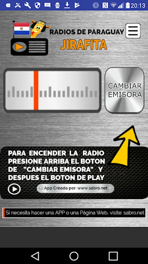 Radios Paraguay little giraffe is a free app that lets you listen on Android phones and radios Christian of Paraguay, radios Paraguayan News, community radios, music and several radios of all cities in Paraguay Tablets, from anywhere in the world, always be aware of everything that happens in the Republic of Paraguay, at any time through the radio Giraffe.