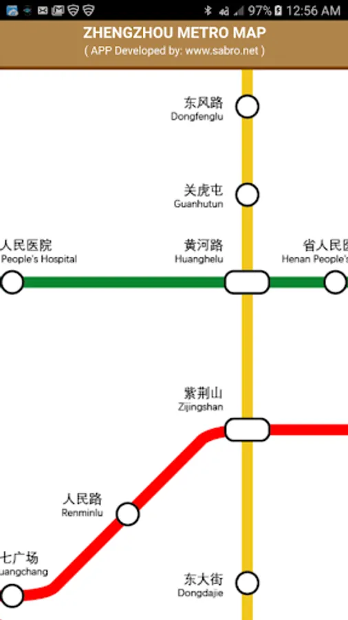 Offline Map of Metro Lines in Zhengzhou City, up to Date.