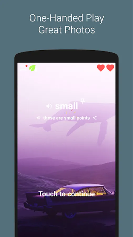 Learn words in simple one-handed play with great photos! Isn't that cool? Enjoy lightly in your spare time! This game is optimized for that.