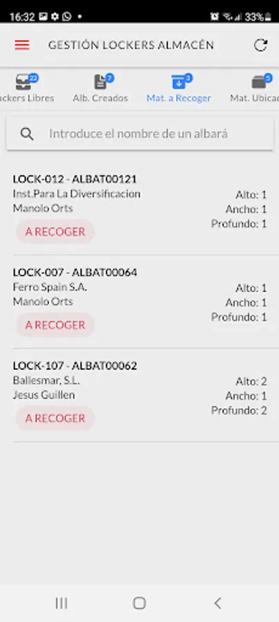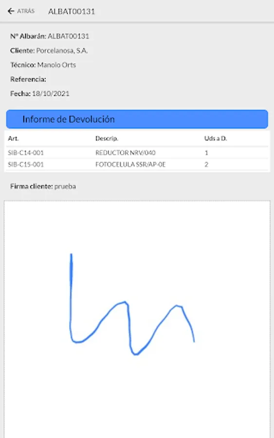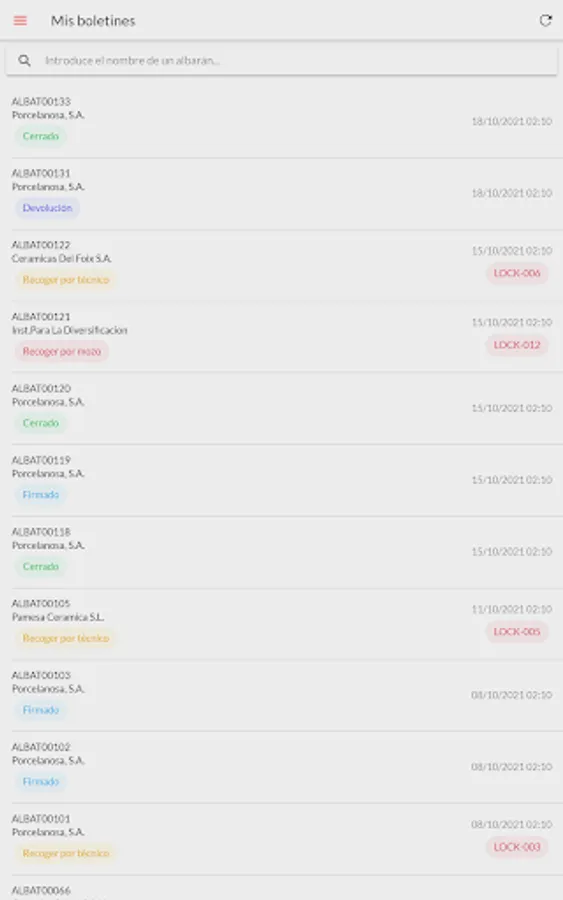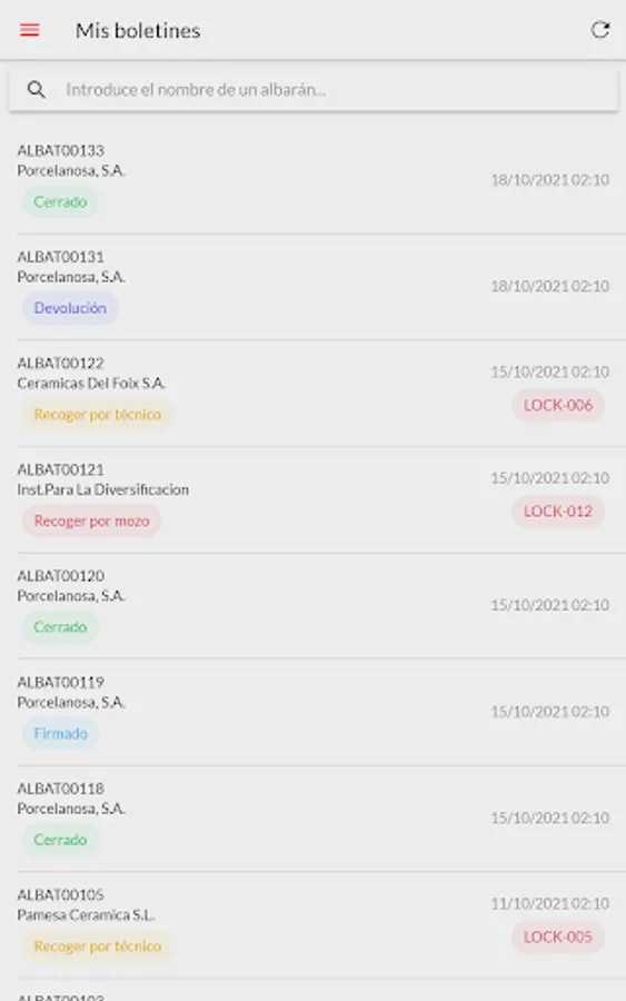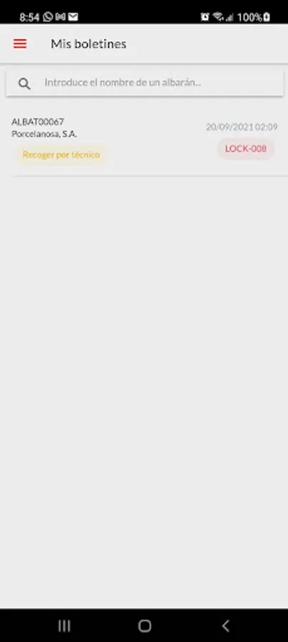 Internal application of the Digital Delivery Note for SACMI IBÉRICA technicians. It consists of the application for the Warehouse: location and collection in locker and for the technician: collection of delivery notes and return in locker. Also application for the article and market search engine for technicians who can manage their orders