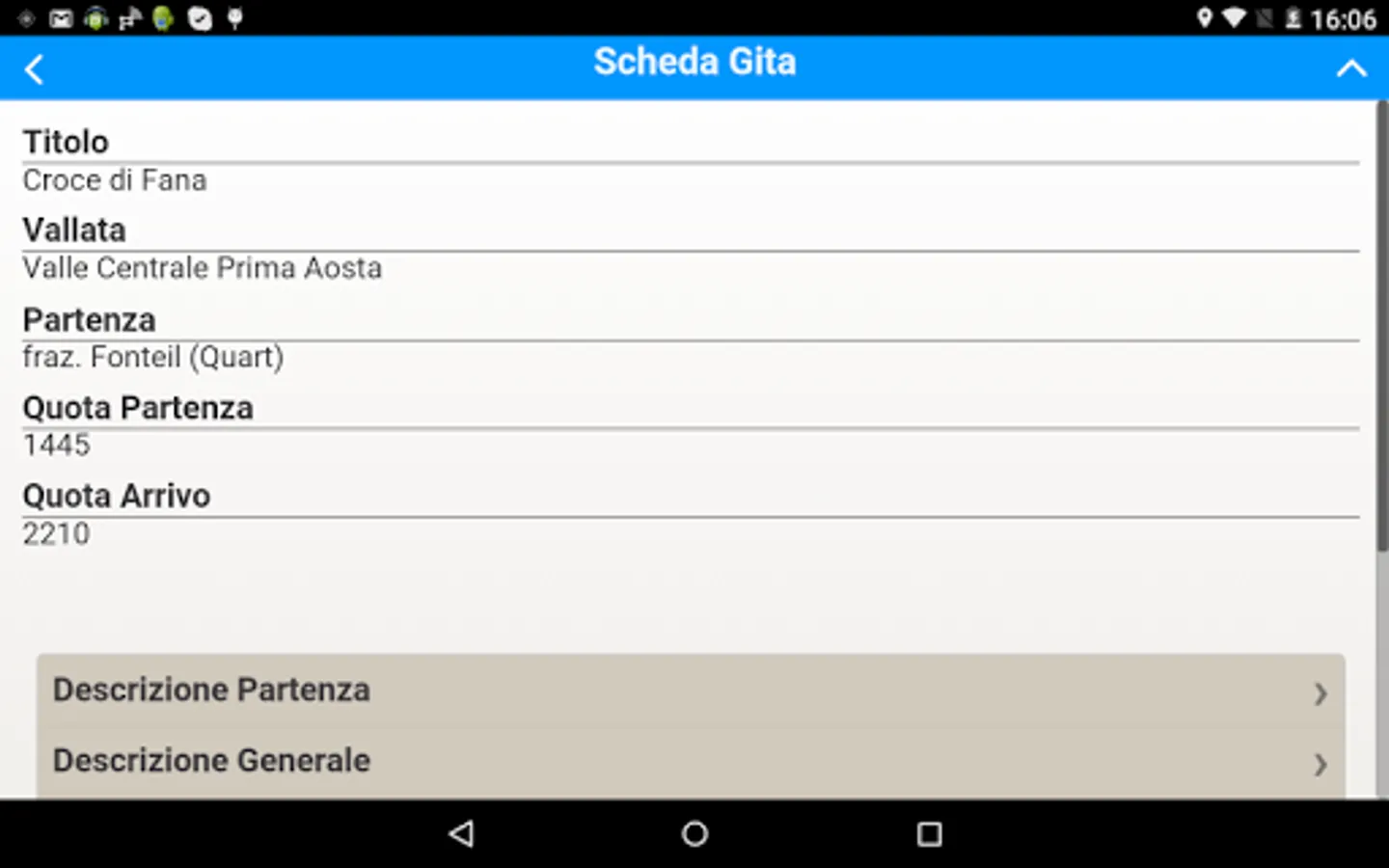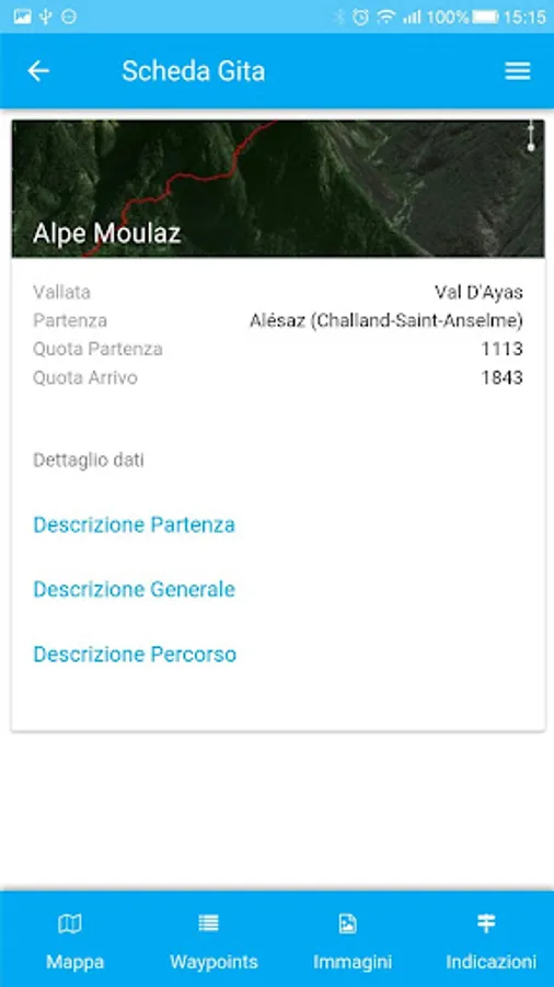 - All technical data (starting and altitude, arrival and altitude, difficulty, height, length, rise and fall time, best time) and a precise description of the climbing path.