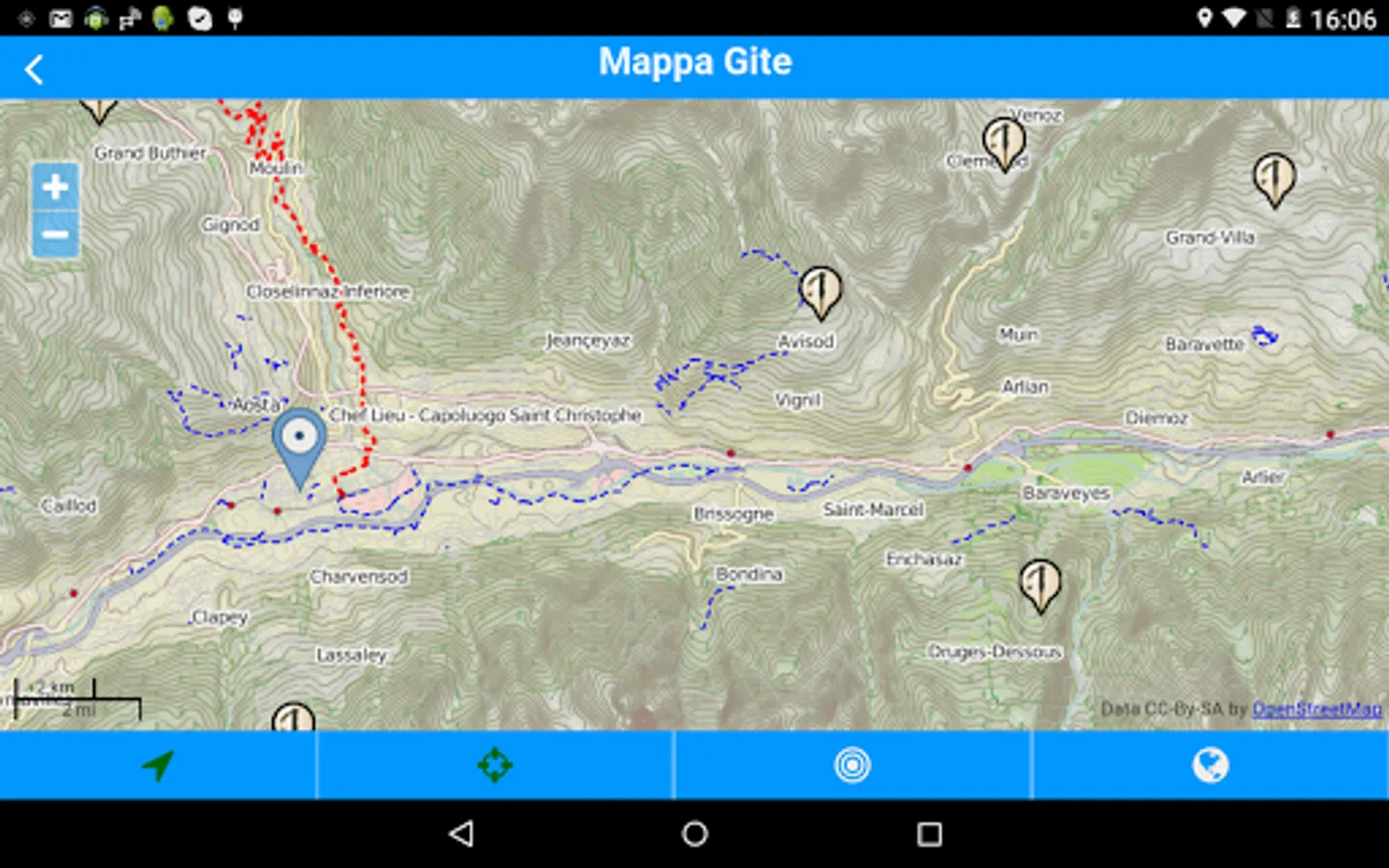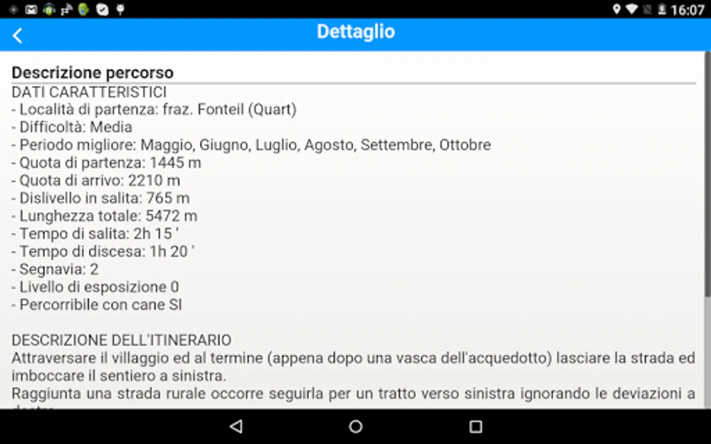 The basic cartography used is that made available by OpenStreetMap (OpenCycleMaps) which contains, in addition to basic directions, also the contour lines and the paths.