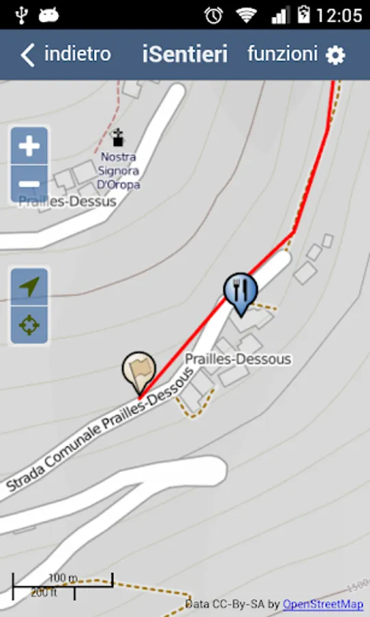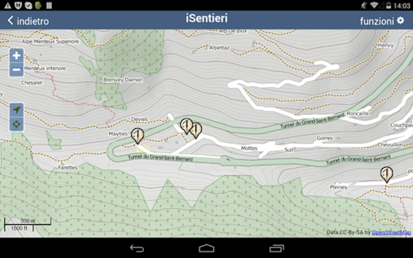 The base map used is made available by OpenStreetMap which contains, in addition to basic directions, also the level curves and paths.