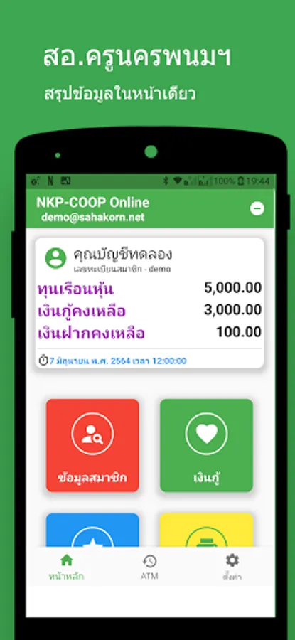 An application for members of Nakhon Phanom Teacher Savings Cooperative Limited that allows members to check stocks, loans, deposits and ATM movements, etc.
