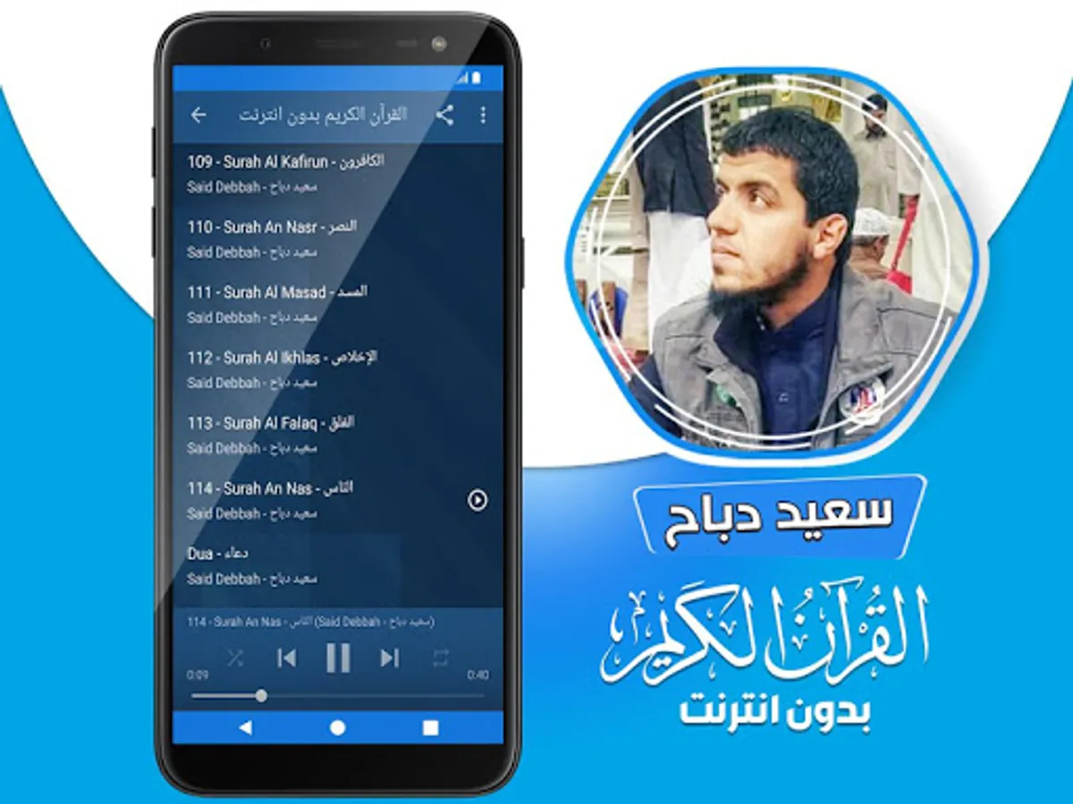 🔹 The Holy Quran application contains the voice of the reader Saeed Dabah, listening to the surahs of the Qur’an without internet and it is characterized by this application for free recitation of the Qur’an.