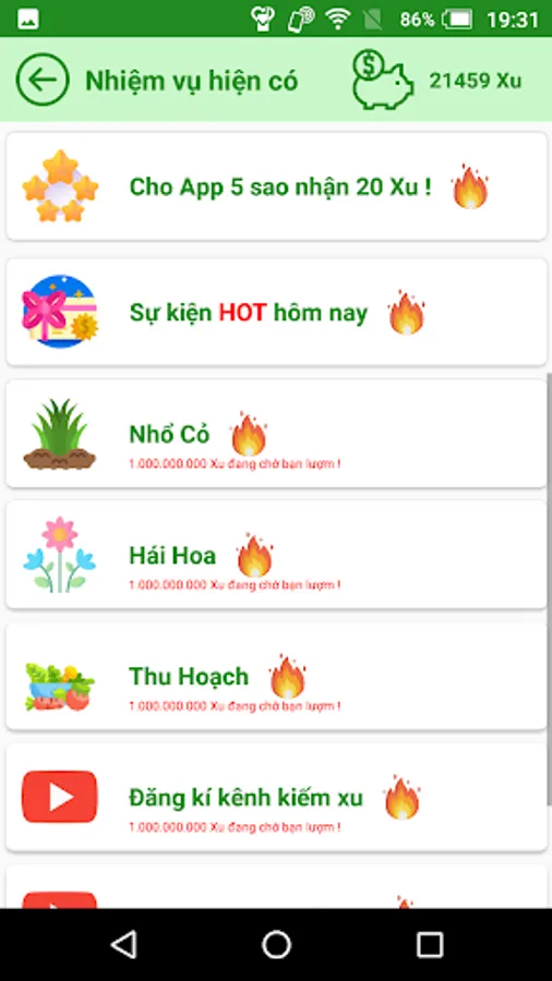 - By performing basic but very interesting tasks in gardening such as Weeding, Flower Picking, Harvesting etc., users can easily complete and receive corresponding remuneration in Coins. User can exchange this Coin to scratch card or cash.