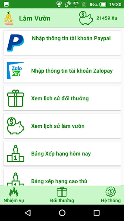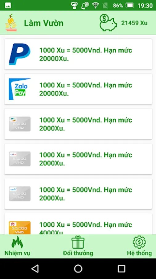 - Support to exchange MoMo, ZaloPay, Paypal, etc