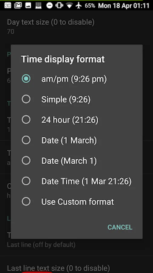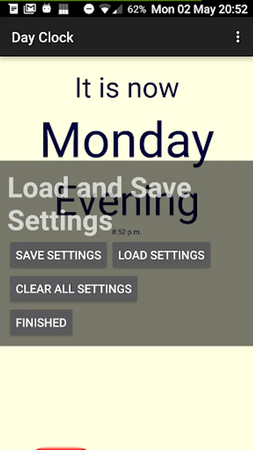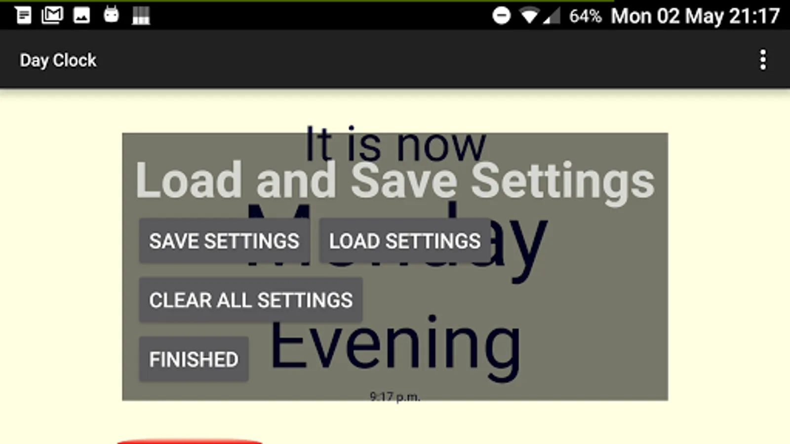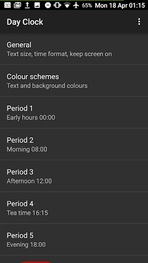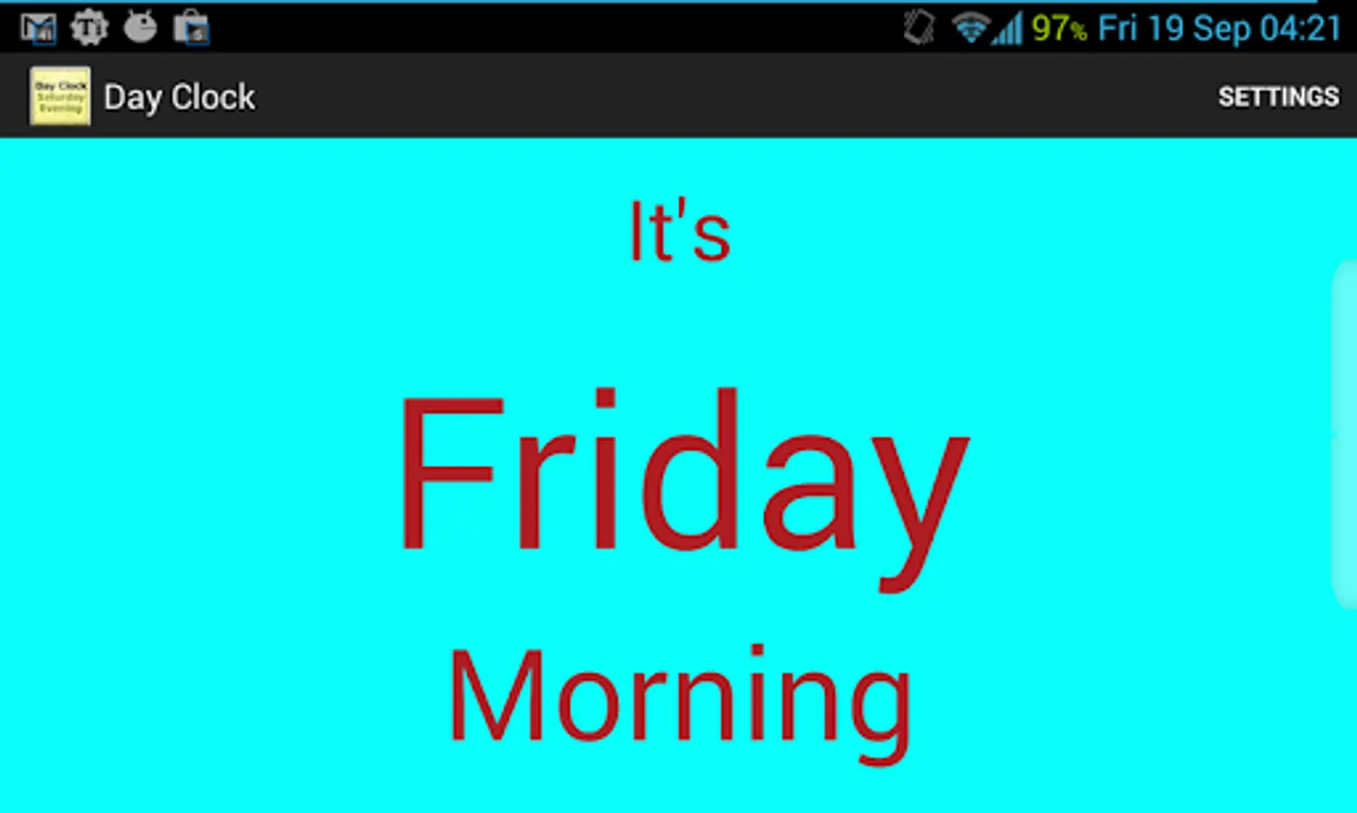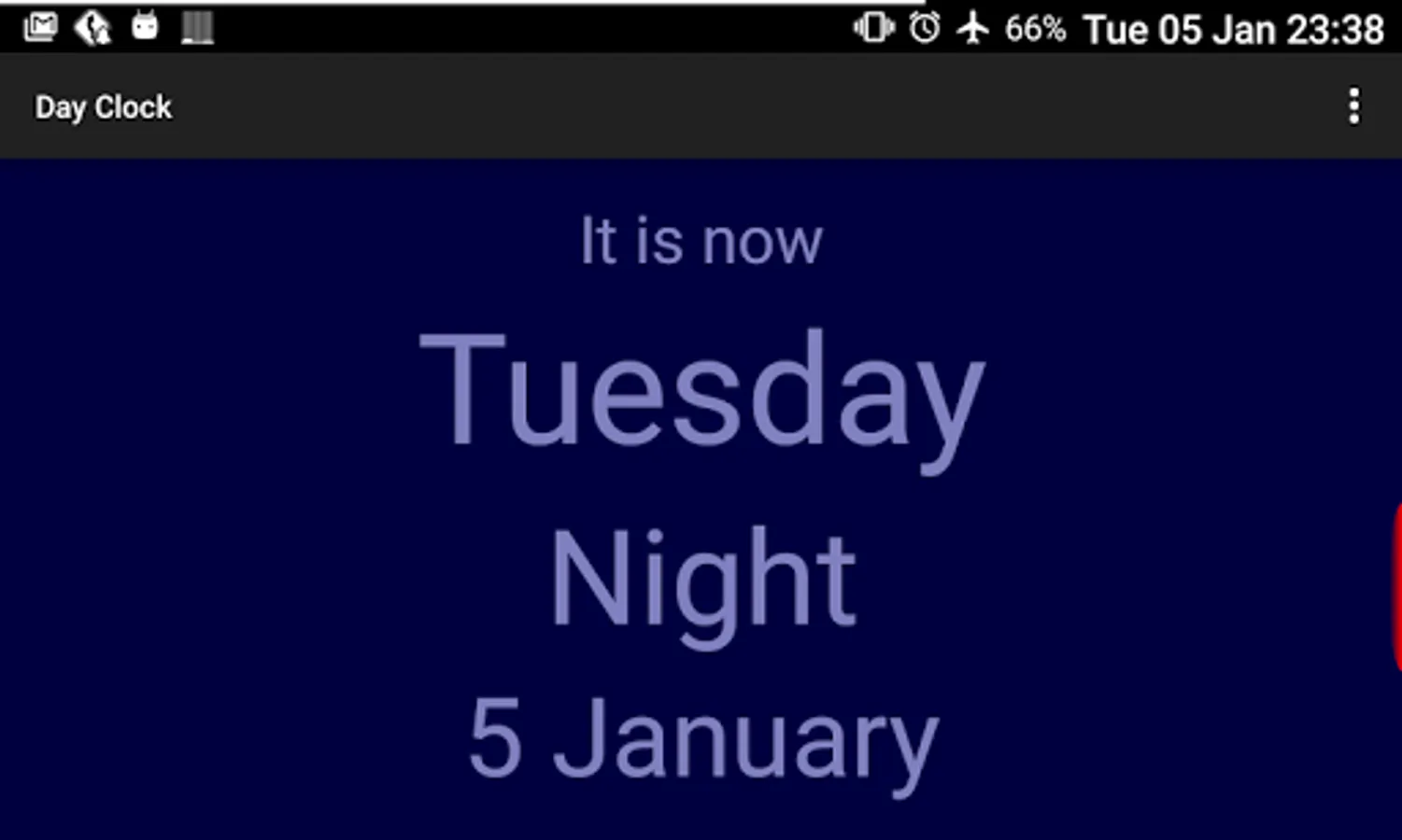 This clock app makes it easy for people with dementia or Alzheimer's to keep track of time. It can help to avoid phone calls in the middle of the night! You can set up periods of the day such as Morning, Afternoon, Tea time etc. For each period you can say when it starts and finishes, and which days it occurs.