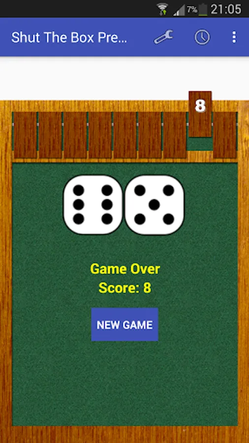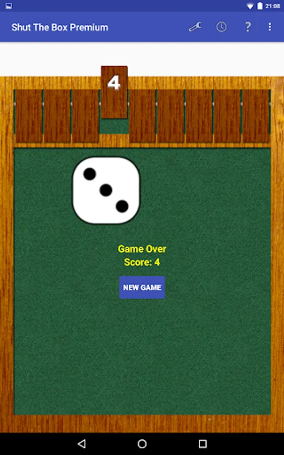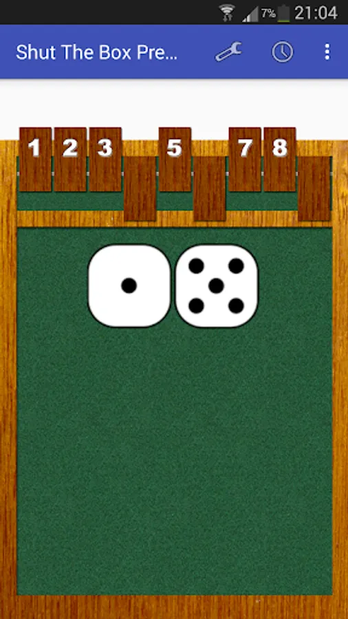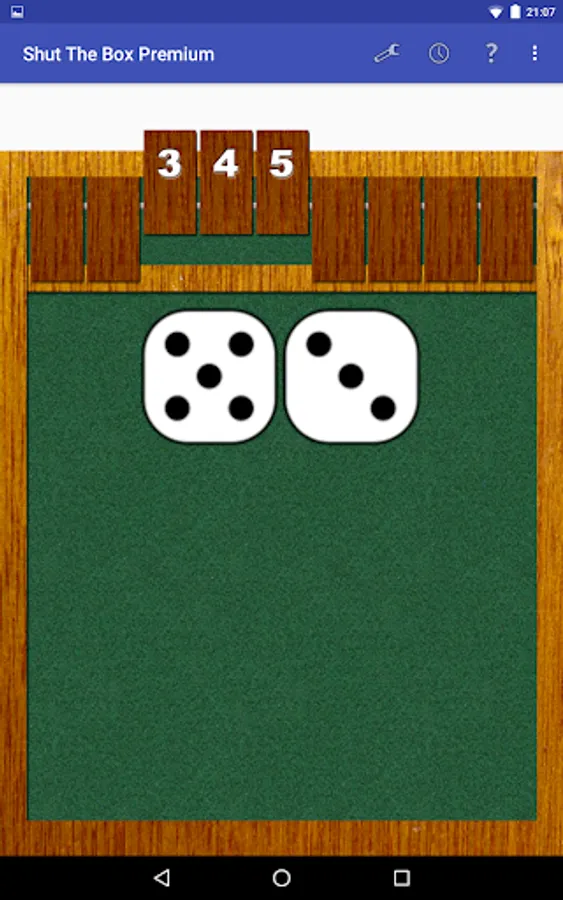 Continue to roll the dice and flip number markers down until you either roll a dice total that has no combination of number markers remaining or you have flipped down every number marker and have successfully "Shut The Box"!