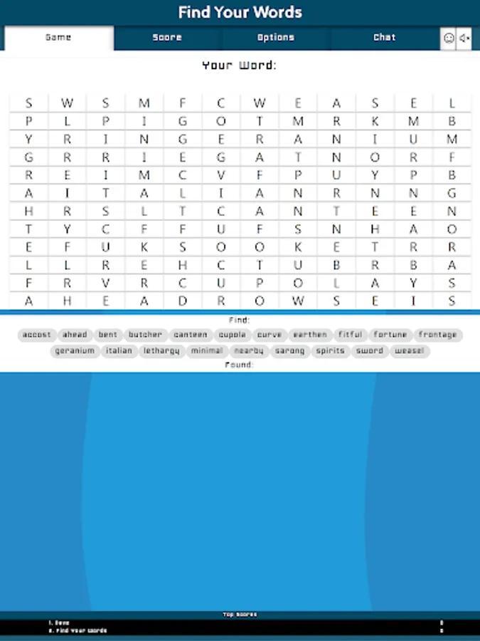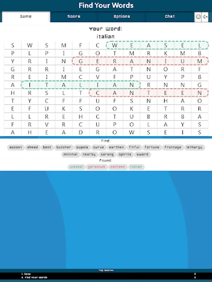 Find your words is a multi-player Word Search Puzzle game that brings the most fun when you play it in the same room with your friends. It is also known as word find, word seek, word sleuth or mystery word puzzle. It is a word game that consists of the letters of words placed in a grid. The objective of this puzzle is to find and mark all the words hidden. Each word may be placed horizontally, vertically, or diagonally. A list of the hidden words is provided.
