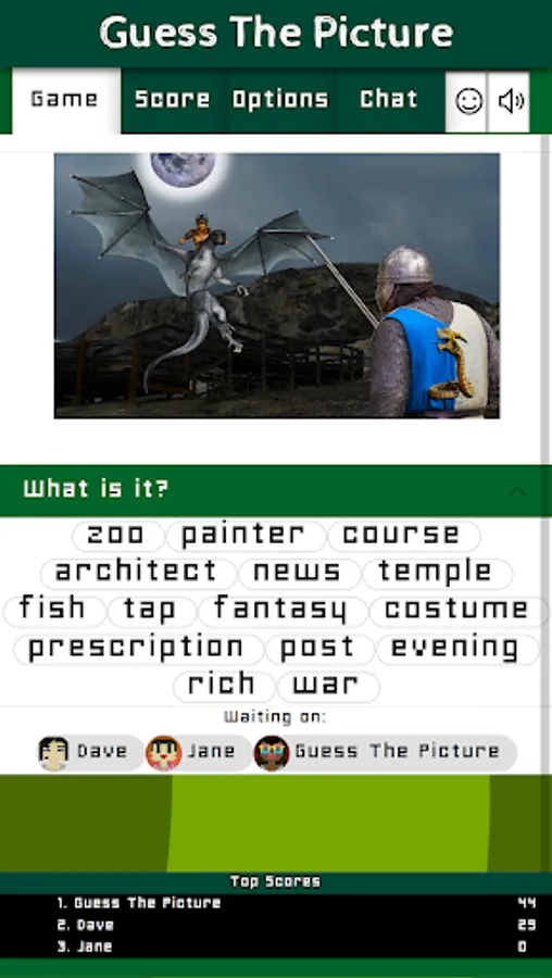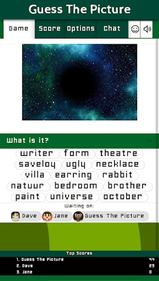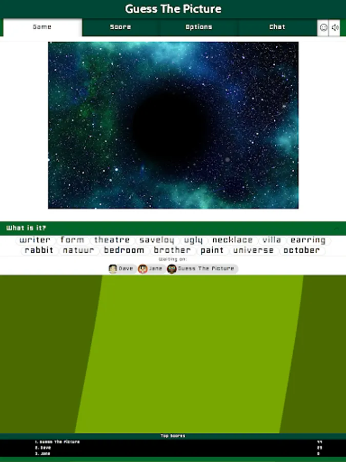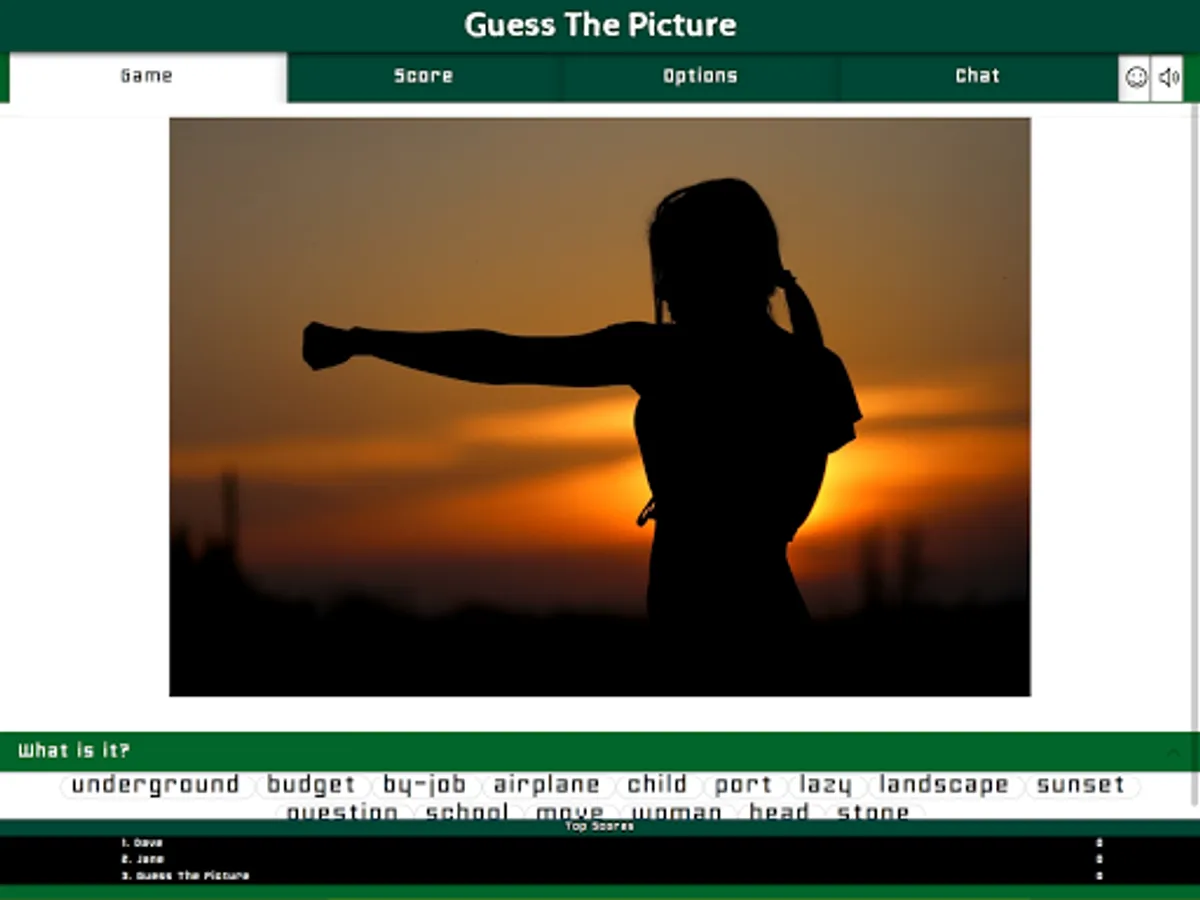 Guess The Picture is a multiplayer game that brings the most fun when you play it in the same room with your friends. Each round everyone sees a photo appearing everyone has to click no the right word that describes it.