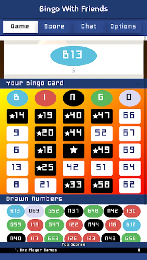The goal of the game is to select the shown number on your bingo card. If have a full line (horizontal, vertical or diagonal) you win the round. Your bingo card shows a selection of random numbers between 1 and 75 and every number on the card can be clicked. In the game options you can configure if you can select earlier shown numbers or only the last number. If you click on a number that was not shown, you will get a time-penalty.