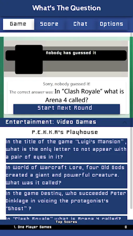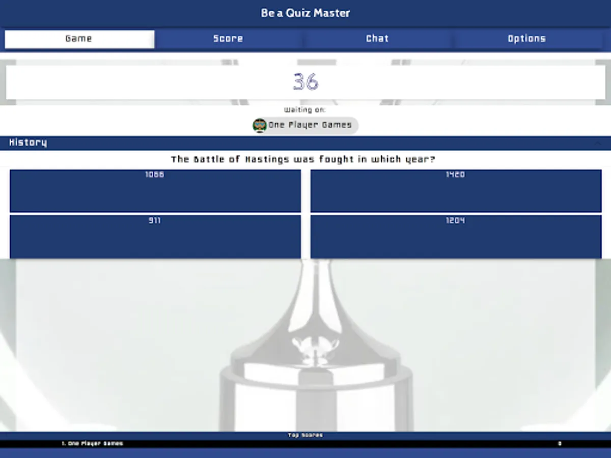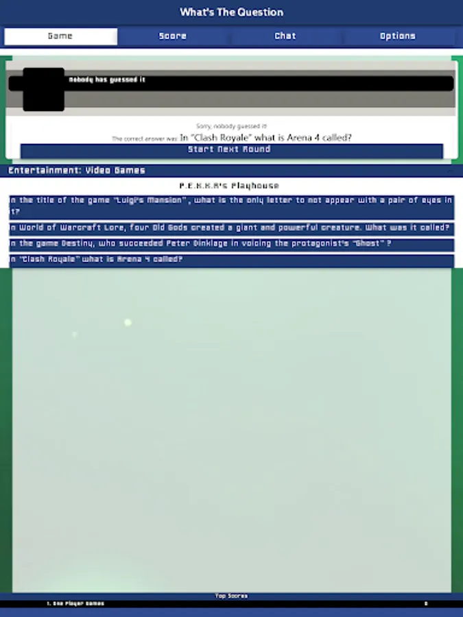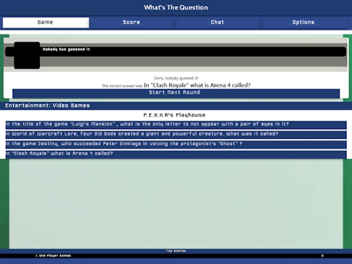 Each round an answer to a question is shown on the screen and some multiple choice questions. Click as quickly and before the time runs out, on the right question matching the answer. When everyone has made a guess, the fastest person that made a correct guess, wins the round. If nobody guessed it, no points are earned.