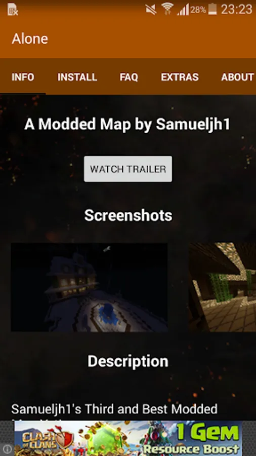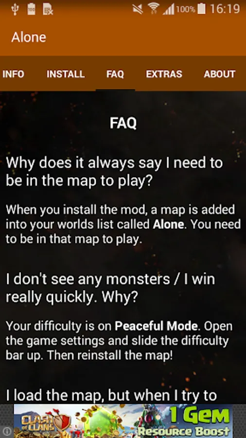 This app allows you to install the map with a click of a button. It also has information about the mod, FAQs and more!