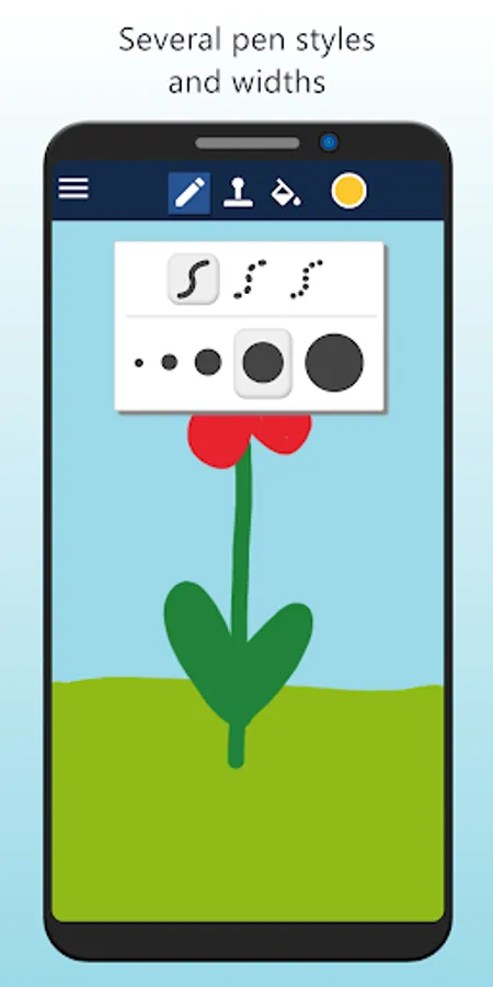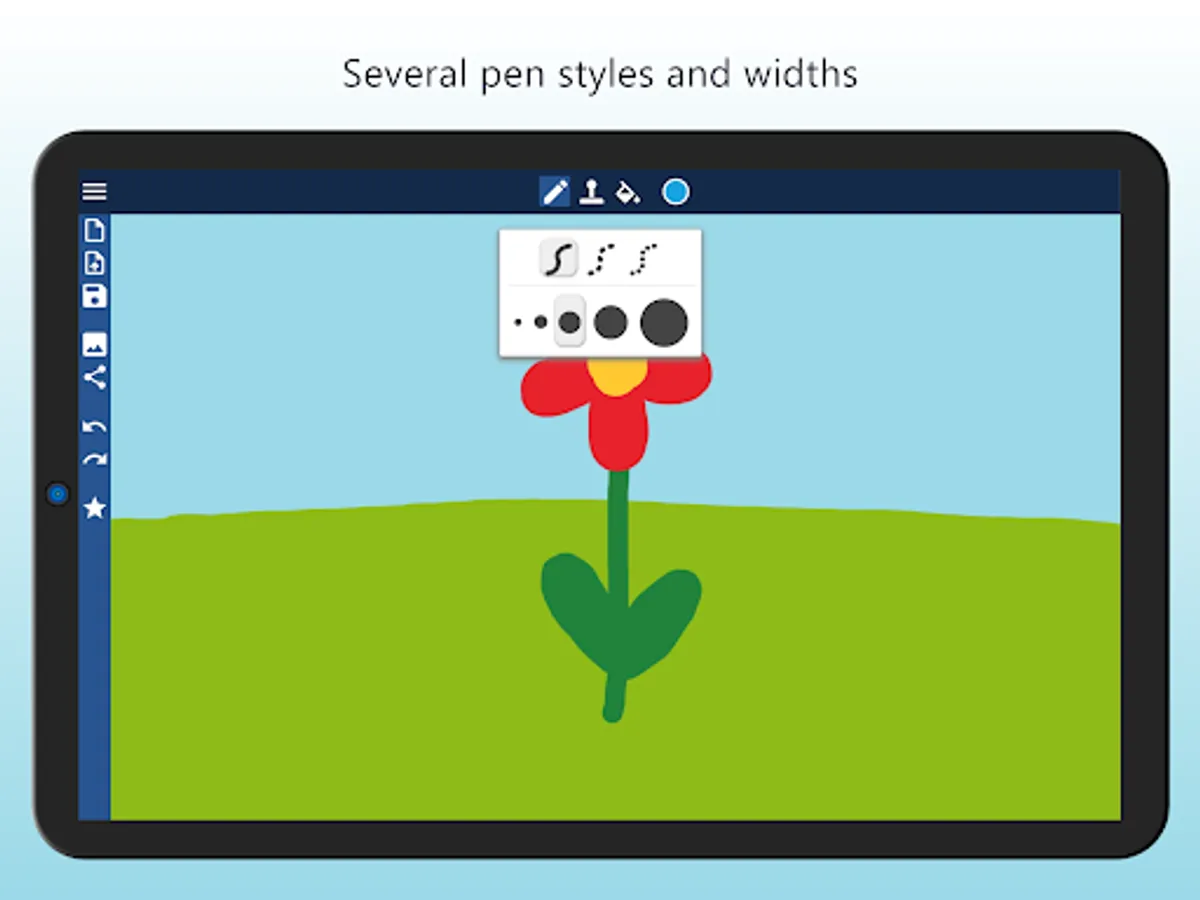 - Draw with several pen styles and widths