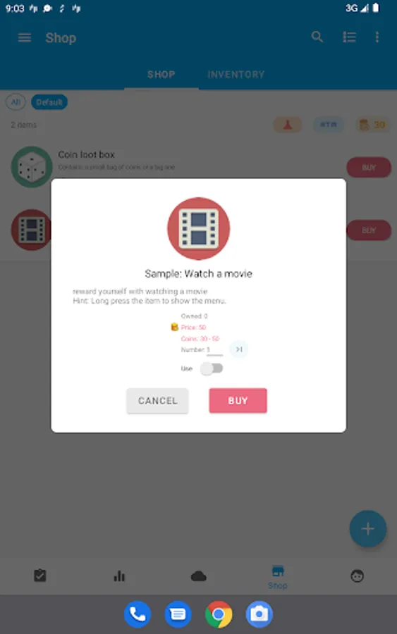 Abstract your task reward into the app as a shop item, whether it is an in-kind reward, a reward for rest and entertainment time, or a stat reward in the app, such as taking a 30 mins-break, watching a movie, or getting a random coin reward.