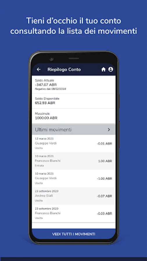 Io pago Abrex is the official App of the Circuit dedicated to members who want to manage payments in Abrex anywhere and at any time. With Io pago Abrex you can pay, receive payments, monitor your balance easily and securely and always have your Digital Card with you.