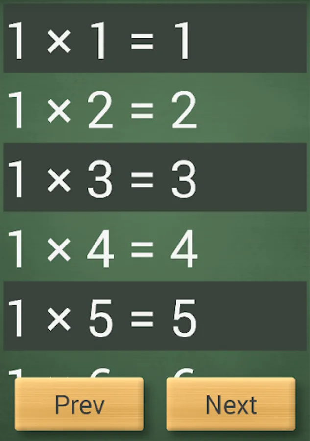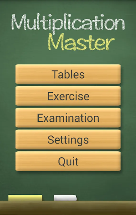 There are 3 modes available, Tables, Exercise, and Examination. These suit your learning style,(e.g. Tables mode shows all tables and helps memorizing. On Exercise, you can hide the answer, the multiplier, or multiplicand and improve your memory.)
