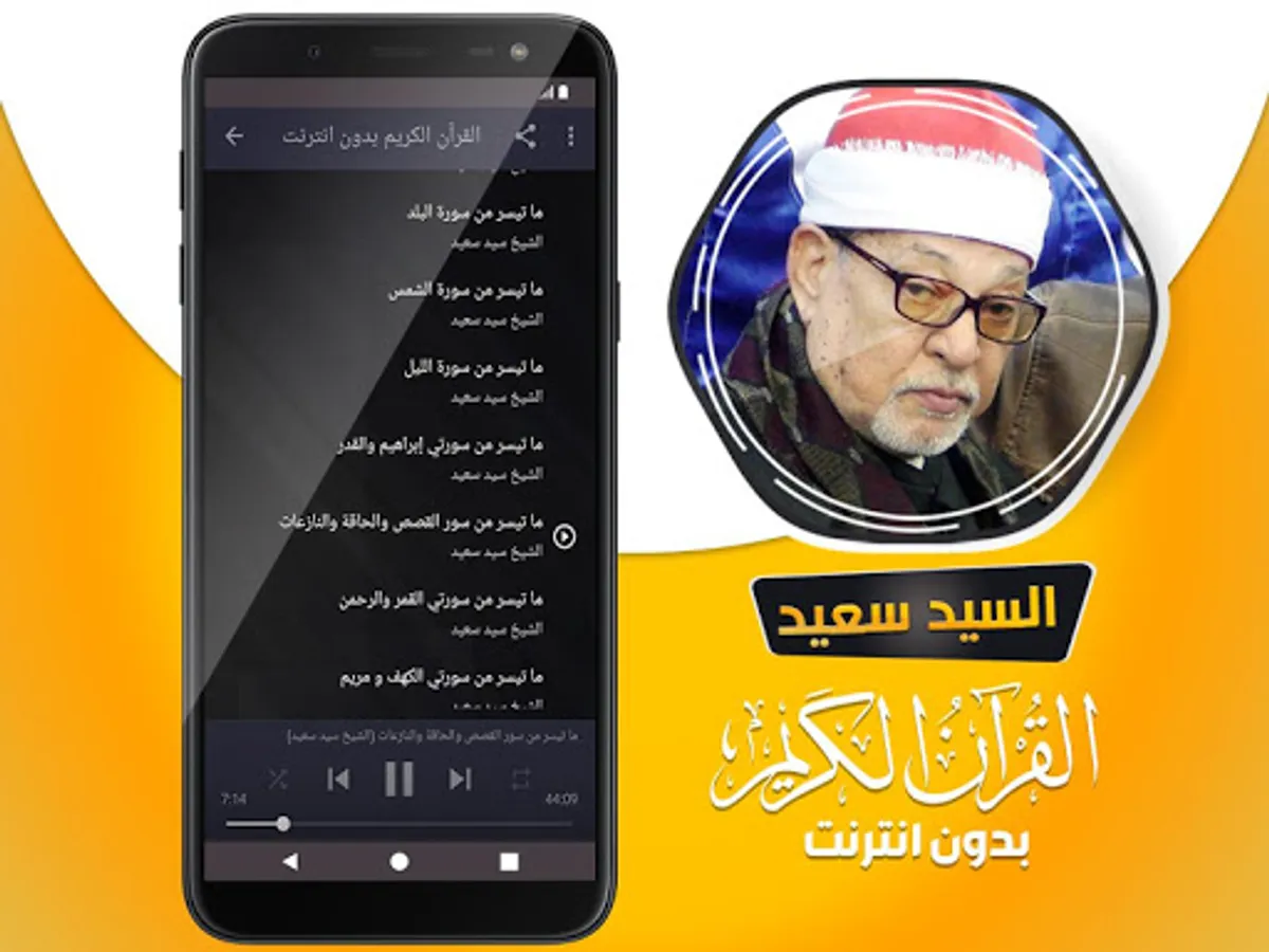 🔹 The Holy Quran application contains the voice of the reader, Sayed Saeed, listening to the surahs of the Qur’an without internet and he is distinguished by this application for free recitation of the Qur’an.