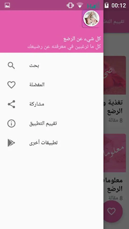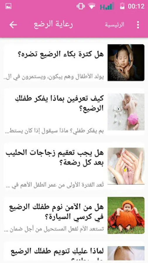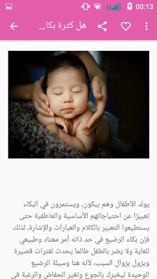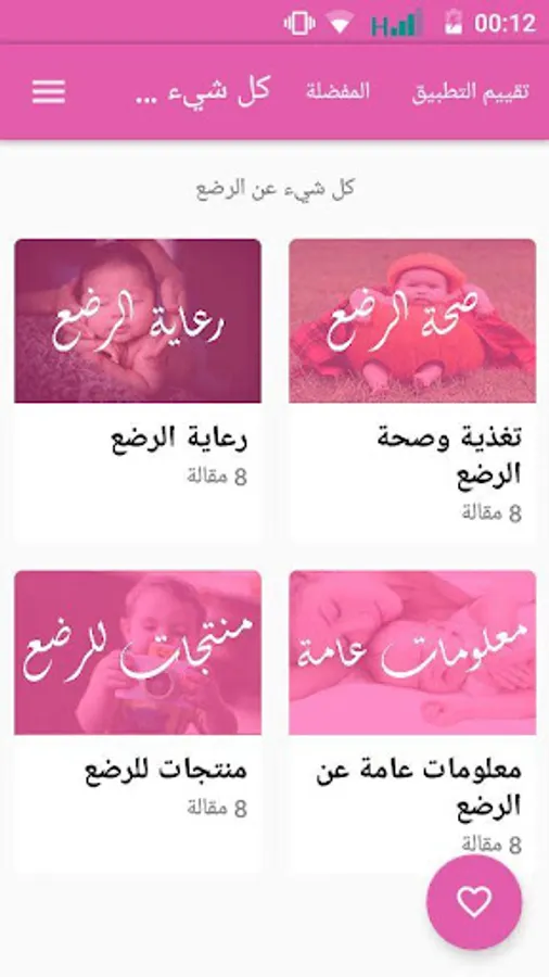 Therefore, we decided to create an application for the children of my eyes to facilitate the life of the mother in dealing with her baby, and you will find in the application four categories related to your new baby, madam. The first category contains some articles that are important to how to care for your baby. Regarding the third classification, we devoted it to the products that are important to your baby, and at the end of the fourth classification you find general information and advice about the infant.