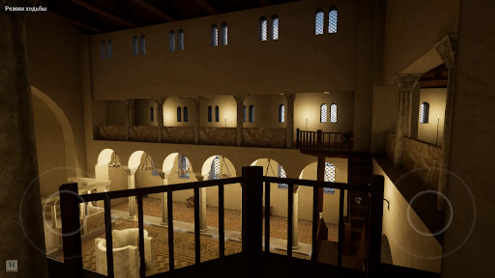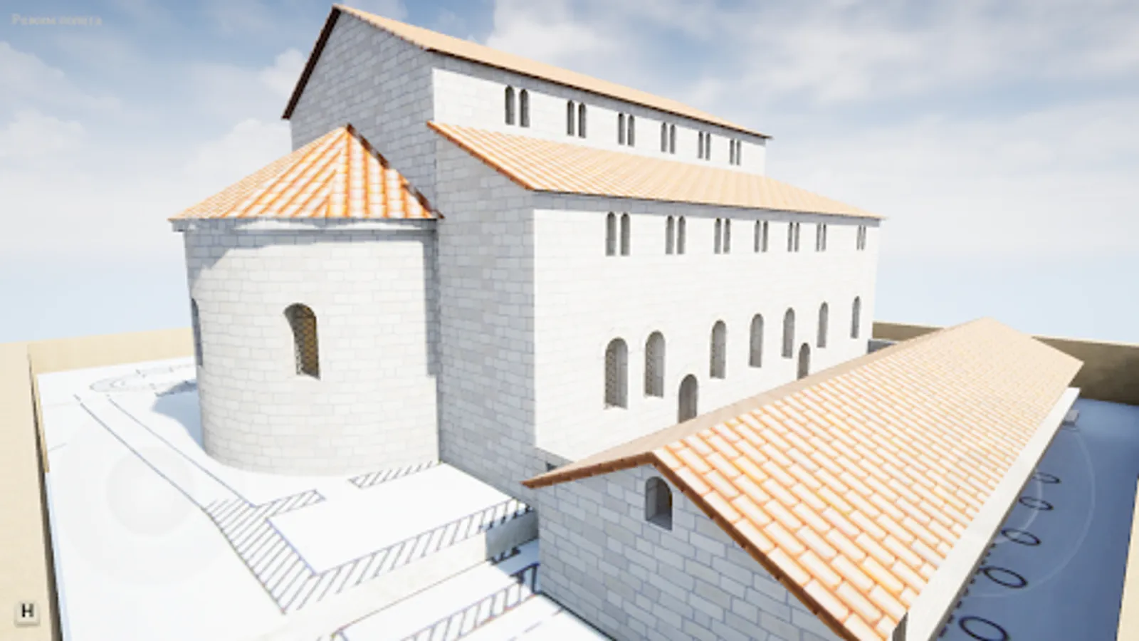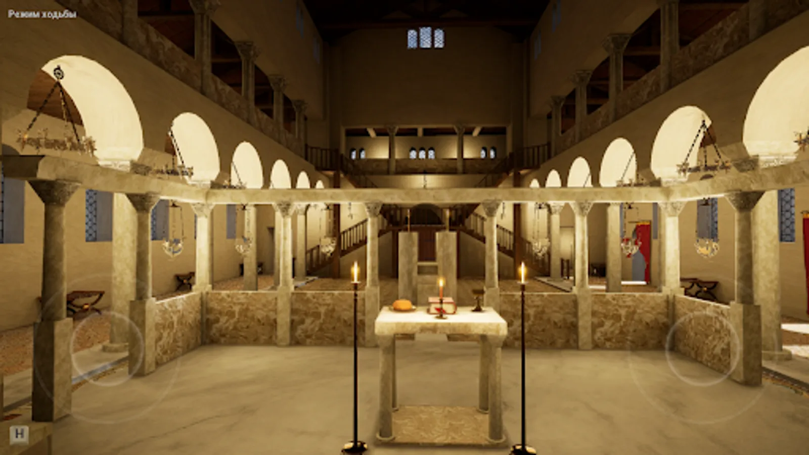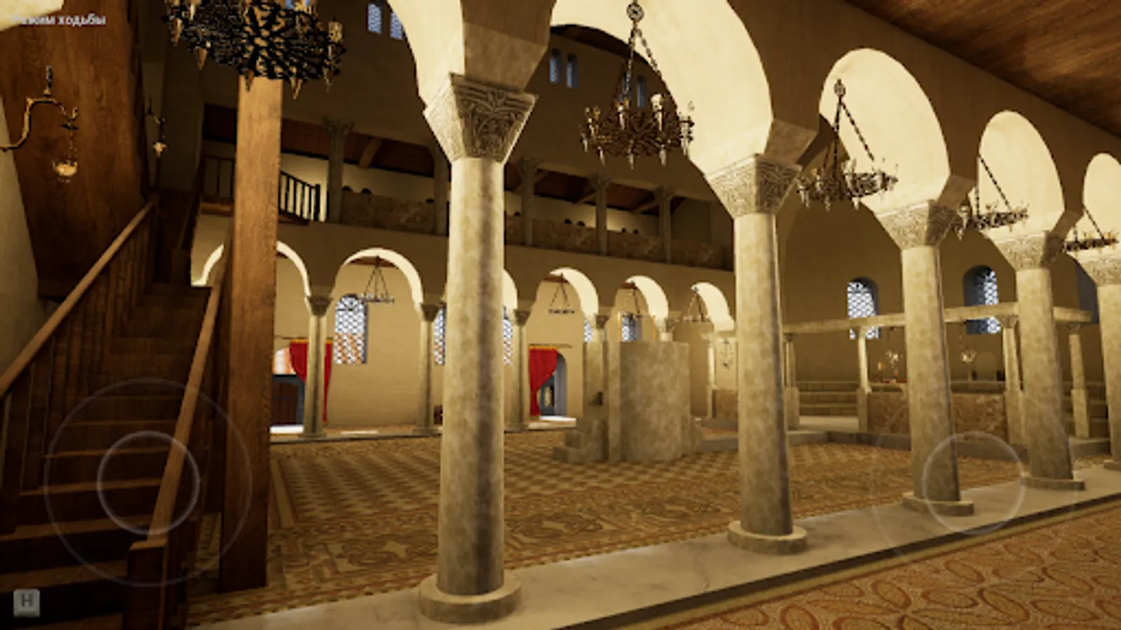 This project is my second reconstruction, made for interactive visualization, providing interactivity in my projects. It was made with increased interior detailing. Here is presented not only the basilica itself, but the attached complex. Reconstruction shows an early version of the temple. An external (non-physical) free camera has been added. One of two reconstructions in which a balance between system requirements and picture quality is found, thanks to the capabilities of earlier versions of Unity3D. Before importing to Unity, an attempt was made to optimize its geometry in the open Blender editor. The textures here do not correspond to the real materials of which the buildings in Chersonesos were built. To illuminate the scenes, several classic point light sources are used, whose shadows are baked in surface textures, to increase compatibility with cross-platform compilation, and low computational power of the target systems. It has built-in simplified help on the board, hidden logo, elementary graphics settings and image quality, as well as three cross-platform options.