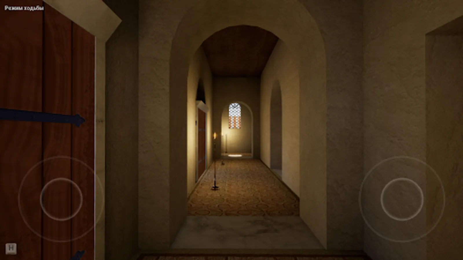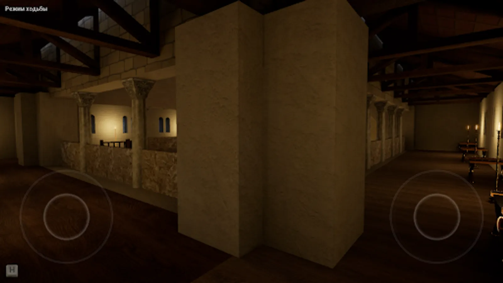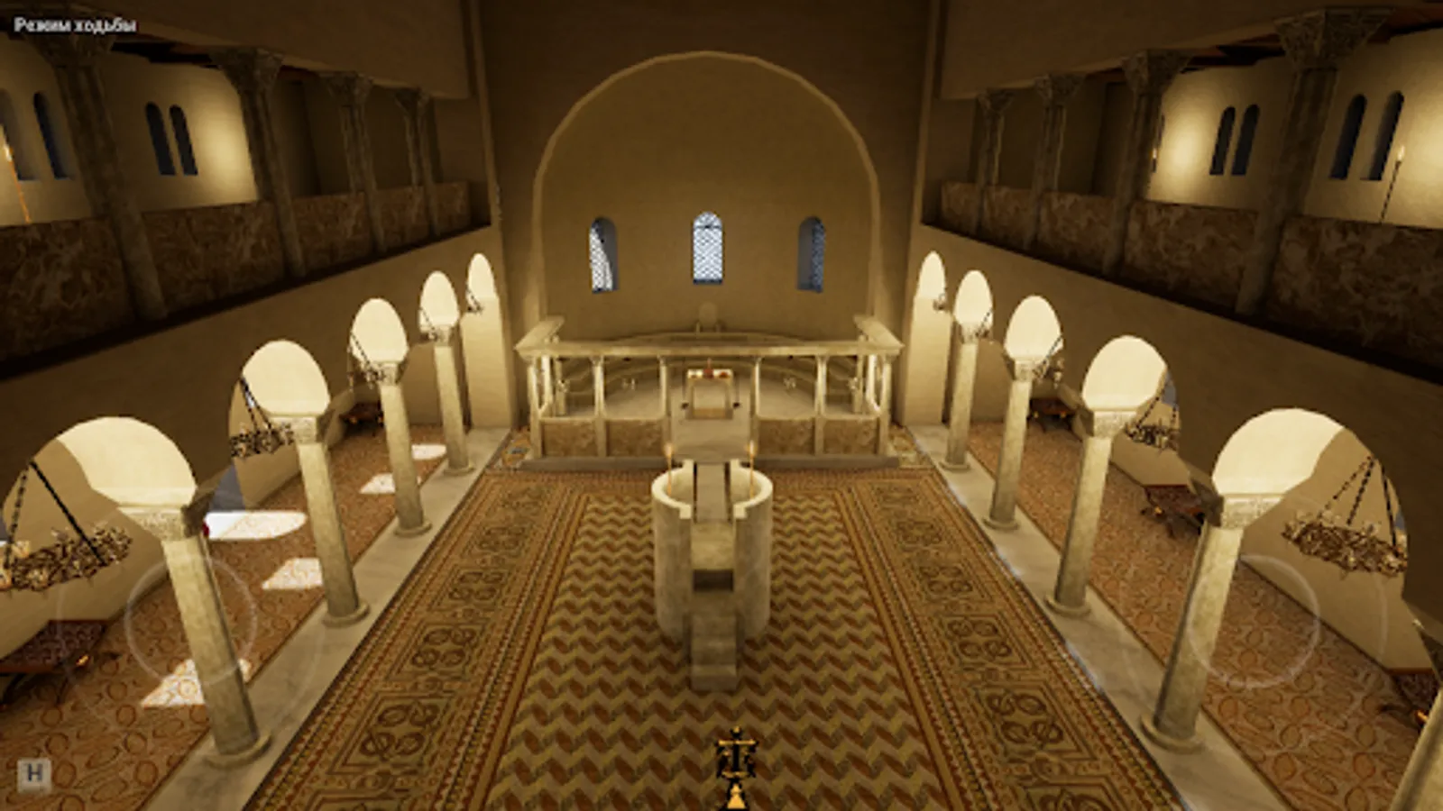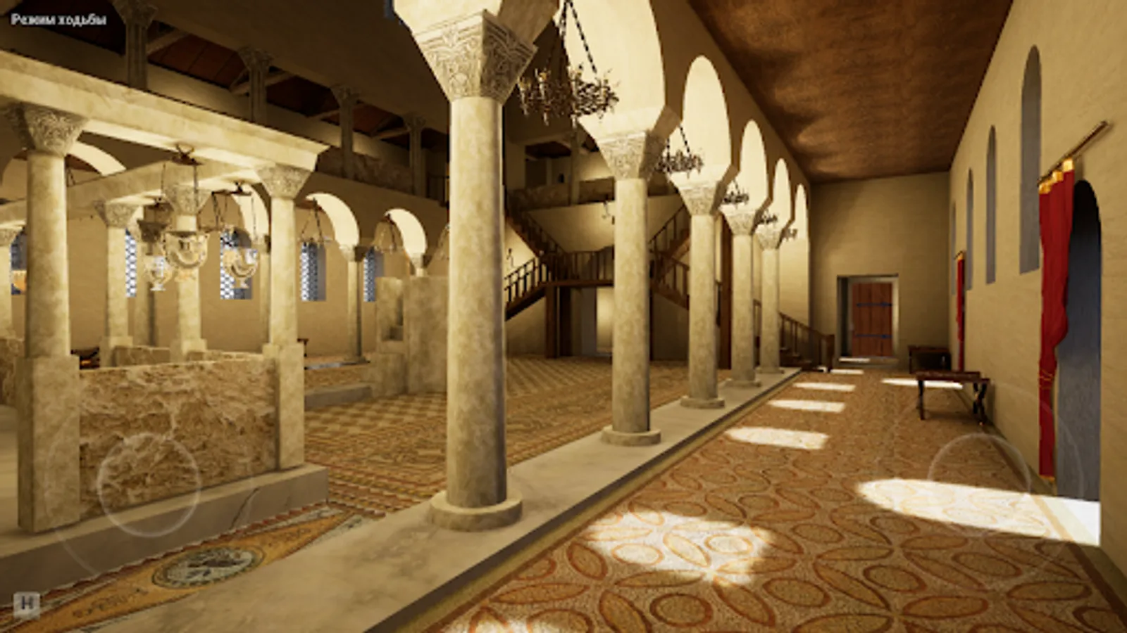 This project is my second reconstruction, made for interactive visualization, providing interactivity in my projects. It was made with increased interior detailing. Here is presented not only the basilica itself, but the attached complex. Reconstruction shows an early version of the temple. An external (non-physical) free camera has been added. One of two reconstructions in which a balance between system requirements and picture quality is found, thanks to the capabilities of earlier versions of Unity3D. Before importing to Unity, an attempt was made to optimize its geometry in the open Blender editor. The textures here do not correspond to the real materials of which the buildings in Chersonesos were built. To illuminate the scenes, several classic point light sources are used, whose shadows are baked in surface textures, to increase compatibility with cross-platform compilation, and low computational power of the target systems. It has built-in simplified help on the board, hidden logo, elementary graphics settings and image quality, as well as three cross-platform options.