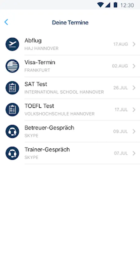 * Overview of your SAT, Embassy, TOEFL or tutoring appointments