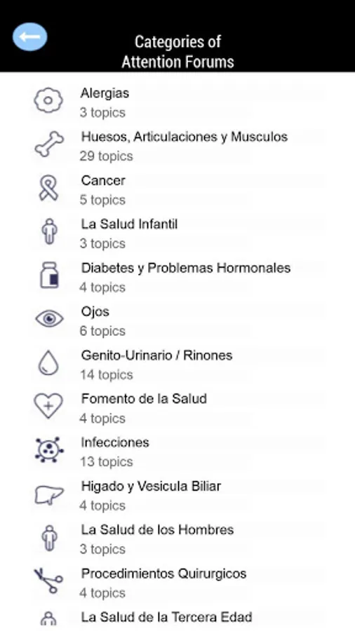 • Medical forums to share your health problems with other people who suffer from the same symptoms, where doctors from all over the world also participate to advise you for free. These forums have an automatic translation system, voice notes and photos that facilitate communication with people and doctors from different parts of the world.